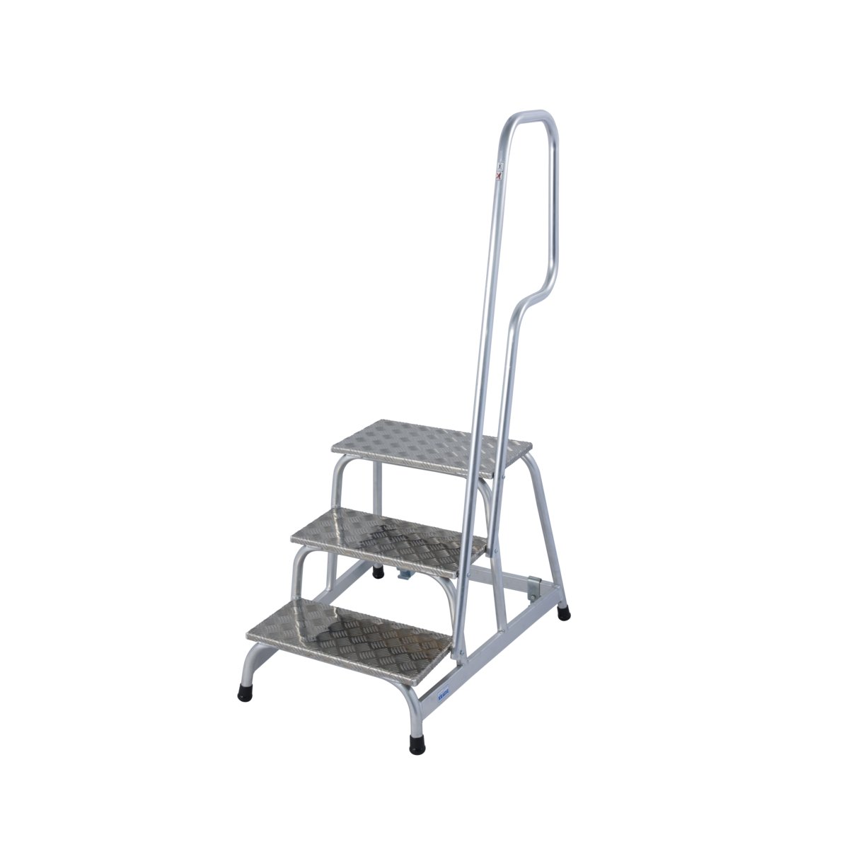 Der mobile Aluminium-MontageTritt mit dem Plus an Sicherheit durch einen integrierten Handlauf.- Stabile, verschweißte Rohrkonstruktion aus robustem Aluminium- 240 mm tiefe Stufen aus Aluminium-Riffelblech gewährleisten einen sicheren Auf- und Abstieg- Obere Standfläche: 520 x 305 mm für einen sicheren Stand- Rutschsichere FußkappenInfo : Zwei integrierte Fahrrollen ermöglichen den sicheren und bequemen TransportErsatzteile/Zubehör:- Rollen-Set (2 Stück) Art.-No. 805 126- Handlauf wahlweise rechts oder links (Stück) Art.-No. 805 119- Höhenverstellbare Fußplatten mit Gummiauflage (4 Stück) Art.-No. 805 133
