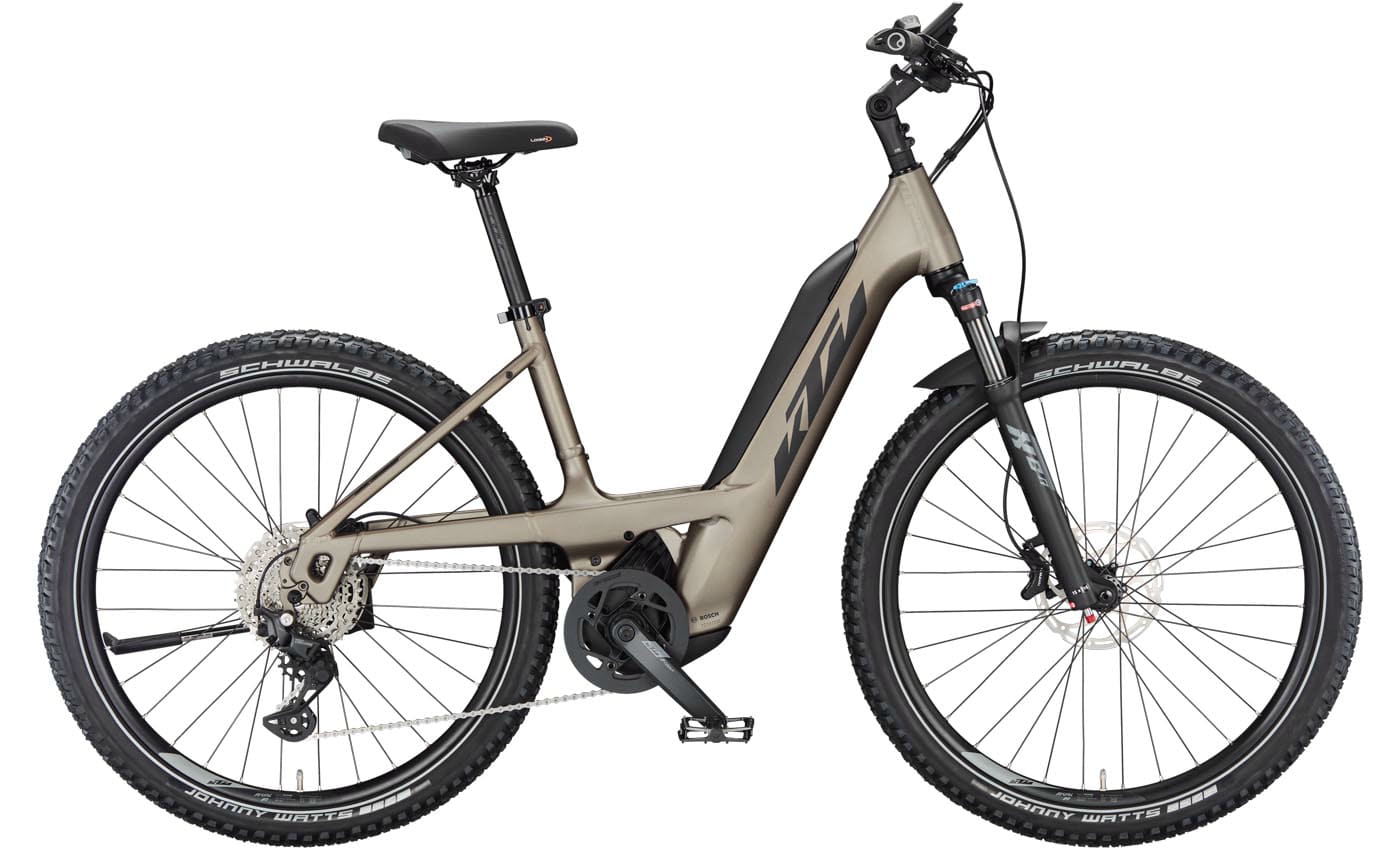 THE FUTURE IS HERE. Aus der Riege unserer MACINA AERA Fahrräder stammt das Testsieger-Fahrrad der Stiftung Warentest (MY22). Die beiden 671 PTS Modelle sind die direkten Testsieger-Nachfolgemodelle. Alle Anforderungen in ein Fahrrad zu stecken, scheint unmöglich. Wir haben es geschafft. Das AERA ist eine Meisterleistung der Ingenieursarbeit und vereint Dynamik, Allroundfähigkeiten, Komfort, sowie modernes Design. Durch innovatives Denken wird das Konzept “Unisex-Rahmen” komplett neu erfunden. POWER TUBE SPORT (PTS) ist die sportlich-dynamische Alternative zum Tiefeinstieg, bietet aber trotzdem, und das ist der ausschlaggebende Punkt, einen tiefen Einstieg. Das Herzstück des Rahmens ist die CIRCULAR-POWER-FLOW (CPF)-Konstruktion mit hochgezogenen Kettenstreben, die direkt ins Hauptrohr einlaufen. Der mechanische Kraftfluss wird durch das gesenkgeschmiedete Motorcover geschlossen und schenkt dem Rahmen eine außerordentliche Stabilität. Kombiniert mit dem konischen Steuerrohr, verleiht das Doppelkammern-System des Hauptrohres dem Fahrrad eine hohe Lenkkopfsteifigkeit und garantiert Fahrsicherheit. Dieses 27,5″-eMTB ist der Allrounder schlechthin, wird dank BOSCH PERFORMANCE CX SMART SYSTEM Motor (85NM) und BOSCH POWERTUBE 625WH SMART SYSTEM Akku nicht müde und erscheint LFC-Ready, oder direkt mit LIGH T-FENDER-CARRIER (LFC) Vollausstattung aus der Box. Ein weiteres Upgrade kommt von SHIMANO und nennt sich LINK GLIDE. Diese eigens für den eBike Gebrauch entwickelten Schaltkomponenten sorgen selbst bei hoher Last für exakte und ruhige Schaltvorgänge und erzielen dadurch eine bis zu drei Mal längeren Lebensdauer.