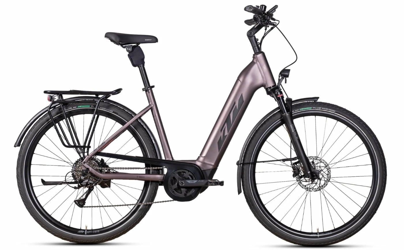KTM Macina S – Elderberry Matt (Wave) Das KTM Macina S in Elderberry Matt bietet mit Wave-Rahmen höchsten Komfort und eine entspannte Sitzposition. Ideal für alle, die Wert auf einfaches Auf- und Absteigen legen und ein zuverlässiges E-Bike für Stadt, Arbeitsweg und Wochenendausflüge suchen. Motor: Bosch Performance Line Gen.3 (75 Nm), bis 25 km/h Akku: Bosch PowerTube 500 Wh, einfach nach oben entnehmbar Display: Intuvia 50, mit eBike Flow App kompatibel Schaltung: Shimano Altus/Acera 8-Gang Bremsen: Shimano MT200 hydraulische Scheibenbremsen Gabel: Suntour NX1 Coil, 63 mm Federweg Reifen: Schwalbe Energizer Plus Performance mit GreenGuard Pannenschutz Ausstattung: Gepäckträger, Schutzbleche, Busch & Müller Lichtanlage, gefederte Sattelstütze, Seitenständer Mit seiner eleganten Farbgebung in Elderberry Matt und der robusten Ausstattung vereint das Macina S Alltagstauglichkeit und Fahrspaß. Ein komfortables E-Trekkingbike, das dich sicher und entspannt ans Ziel bringt – egal ob kurze Strecke oder lange Tour.