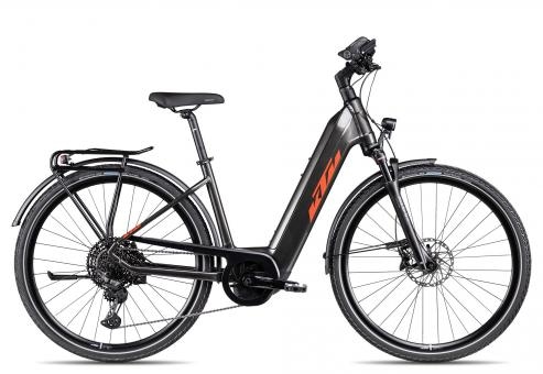 Ebenfalls von Shimano stammt die hydraulische 4-Kolben Scheibenbremsanlage., KTM hat den 85 Nm starken Bosch Performance Line CX Antrieb zusammen mit dem riesigen 750 Wh Akku besonders elegant integriert., Besondere Details wie die Busch & Müller Lichtanlage mit 150 Lux Scheinwerfer, die 63 mm SR Suntour NCX-D Luft-Federgabel mit Lockout oder die Ergon GP3 Griffe mit Barends, runden die hochwertige Ausstattung des KTM Macina Sport 720 Trekking-E-Bikes stimmig ab., Robust, kompakt und elegant am Vorbau untergebracht, überzeugt das Kiox 300 System mit Fernbedienbarkeit und Bluetooth-Vernetzung., Das 11-fach Schaltwerk stammt aus Shimanos hochwertiger XT Mountainbike-Gruppe und liefert dem Macina Sport 720 fein übersetzte Gänge, die per XT Schalthebel flüssig durchgeschaltet werden können., Perfekt für ausgedehnte Touren und Radurlaube: Das KTM Macina Sport 720 Trekking-E-Bike überzeugt mit XT-Schaltung, einem leistungsstarken Bosch