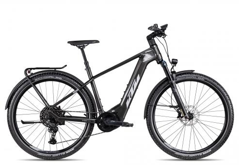 Vorne dämpft eine 120 mm Luftkammer-Federgabel von SR Suntour wie bei einem Mountainbike., Die komplette Shimano Deore Schaltung, 4-Kolben Tektro Scheibenbremsen, 150 Lux Scheinwerfer, Racktime 2.0 Systemgepäckträger und vieles mehr, unterstreichen die wertige Gesamtausstattung des KTM Macina Team LFC., Typisch KTM, ist das Macina Team LFC E-Trekkingbike auch im Detail gut und stimmig ausgerüstet., Ein feines Offroad Trekkingbike mit hohem Federkomfort: KTM Macina Team LFC., Dank der leistungsstarken Top-Ausstattung mit Bosch CX Motor, 750 Wh Akku und Kiox 300 TFT Farb-Display hast du ein exzellentes E-Bike System für lange Touren mit Anspruch., Dazu rüstet KTM das Macina Team LFC mit eine absenkbaren Sattelstütze und breiten Schwalbe Johnny Watts Offroadreifen aus., Hier bekommst du top Komfort auf schottrigen Ausflügen und kleineren Umwegen durchs Gelände.