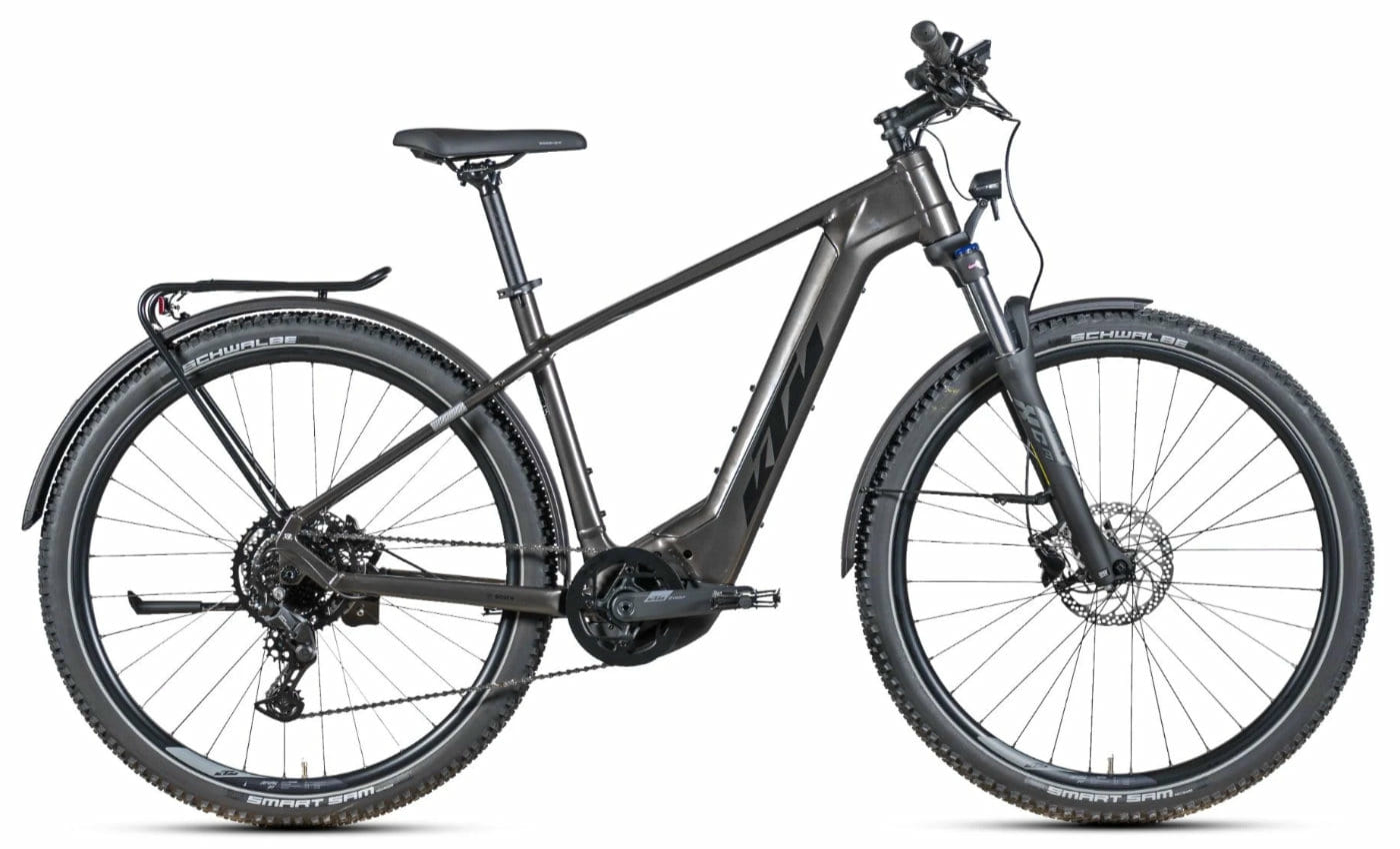 KTM Macina Team X-LFC Mit dem Macina Team X-LFC kommt 2024 ein wahrer Allrounder auf den Markt. Mit dem leistungsstarken CX-Motor der vierten Generation (85 NM) kommen Sie mühelos jede Steigung hoch und in Kombination mit dem 750 WH-Akku sind sehr lange Touren möglich! Die Reifen bieten auch bei unbefestigtem Untergrund guten Halt und mit der hier verbauten Shimano Cues Schaltung bekommen Sie neueste Technologie zu einem sehr guten Preis. Die Geometrie des Macina Team X-LFC verspricht eine eher sportlichere Fahrweise um auch auf Schotter und Wald und Wiesenwegen gute Kontrolle über das Rad zu haben. Durch die Vollausstattung mit Gepäckträger, Schutzblech und Licht ist dieses Rad bereit für Alltagsfahrten zur Arbeit und langen Touren am Wochenende oder im Urlaub. Im Gegensatz zu vielen anderen Herstellern ermöglicht die Bauweise des Rahmens eine mühelose Entnahme des Akku nach oben. Auf dem smarten Farbdisplay können Sie jegliche Daten ablesen und mithilfe der E-Bike Flow App Routen anzeigen lassen und navigieren. Steigen Sie auf und genießen Sie die Fahrt mit dem KTM Macina Team X-LFC!