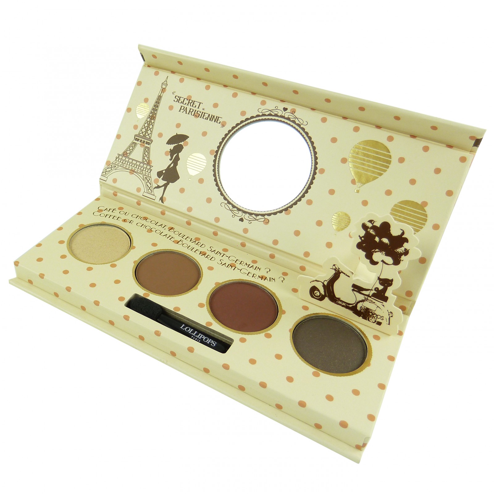 Mit der Lollipops Paris Palette Yeux der einzigartigen Lidschattenpalette können Sie auf einen Schlag für mehr Abwechslung beim Akzentuieren der Augen sorgen. Insgesamt kommt diese Palette mit 4 Lidschatten in verschiedenen Farbnuancen, die Sie miteinander kombinieren können oder auch einzeln einsetzen können. Darüber hinaus kommt das kleine Lidschattensortiment auch noch in einer formschönen Schachtel mit Schminkspiegel im Deckel und mit einem eigenen Lidschattenpinsel, so dass Sie direkt bereit sind, um die Augen zu schminken jederzeit und sogar unterwegs.