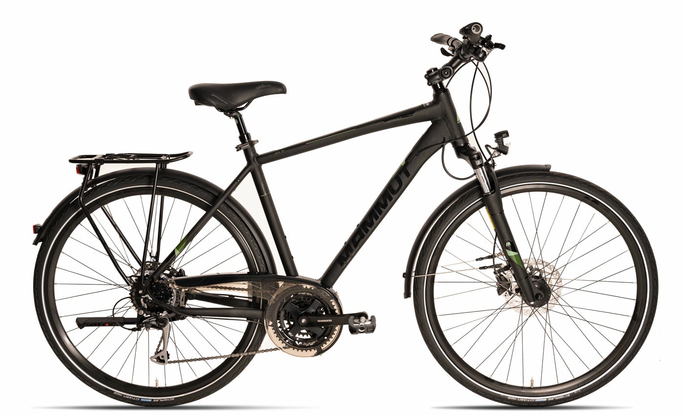 Mammut Edition DLX 7.0 Das Mammut Edition DLX 7.0 ist ein tolles Trekkingrad – perfekt geeignet für den Alltag als auch für sportliche Aktivitäten in der Freizeit. Es ist mit einer umfassenden StVZO-Ausstattung versehen und bietet ein hervorragendes Preis-Leistungs-Verhältnis. Mit seinen zahlreichen Funktionen und Ausstattungsmerkmalen erfüllt es nahezu alle Wünsche. Die Shimano 3-fach-Kettenschaltung mit 24 Gängen ermöglicht es, Steigungen mühelos zu bewältigen und gleichzeitig schnell durch die Stadt zu navigieren. Der Diamant-Rahmen verleiht dem Mammut eine sportliche Optik, und die 28-Zoll-Trekking-Laufräder mit Schwalbe Citizen Bereifung sind ideal für Touren. Die SR Suntour Federgabel und die gefederte Sattelstütze bieten einen hohen Komfort, zusätzlich verfügt das Rad über hydraulische Scheibenbremsen, einen Gepäckträger und Beleuchtung – alles, was man braucht. Lassen Sie sich diese großartige Möglichkeit nicht entgehen.