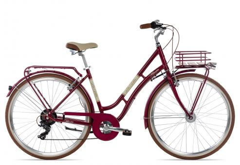 Am Vorderrad sowie Hinterrad wird mit V-Bremsen die Fahrt verlangsamt., Das La Vita ist robust und lässt Erinnerung an die gute alte Zeit aufkommen, verfügt aber trotzdem über alle Ausstattungsmerkmale moderner Fahrräder., Die Formgebung mit tiefem Einstieg zieht herrliche Parallelen zu historischen Fahrrädern aus den 50er und 60er Jahren, hier jedoch modern kombiniert mit sportlicher Übersetzung., Durch die solide Shimano Tourney Kettenschaltung verfügst du über 7 Gänge mit denen du auch vor Anstiegen keinen Halt machen muss., Die komfortable Sitzposition des Maxim La Vita lässt dich entspannt durch die City gleiten., Damit bringst du auch größere Einkäufe vom Wochenmarkt heim., Der stylische Retro-Auftritt des Maxim La Vita harmoniert wunderbar durch die abgestimmten Anbauteile., Die LED-Lichtanlage wird vom Shimano Nabendynamo versorgt., Highlight dieses Citybikes mit Aluminiumrahmen ist der Gepäckkorb über dem Vorderrad mit seinen