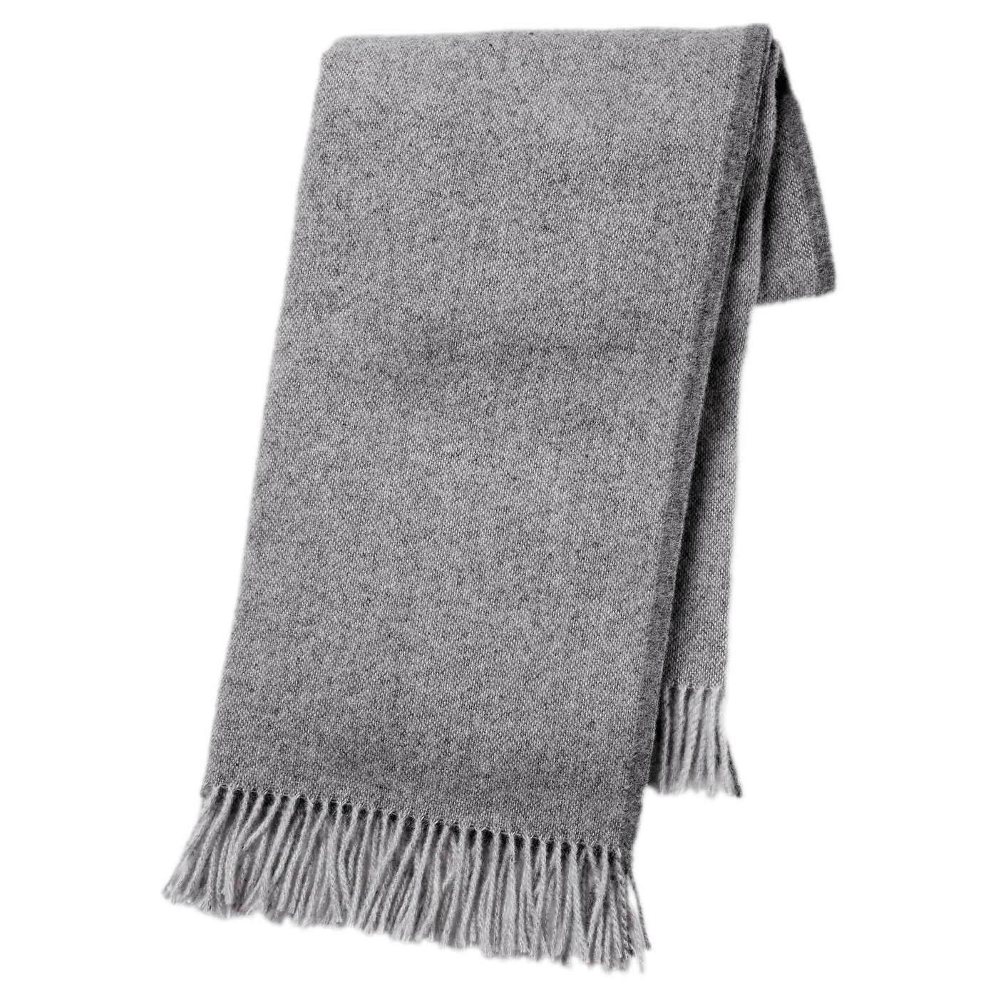 Aus reiner Wolle; die Decke fühlt sich weich und füllig an und hält lange.