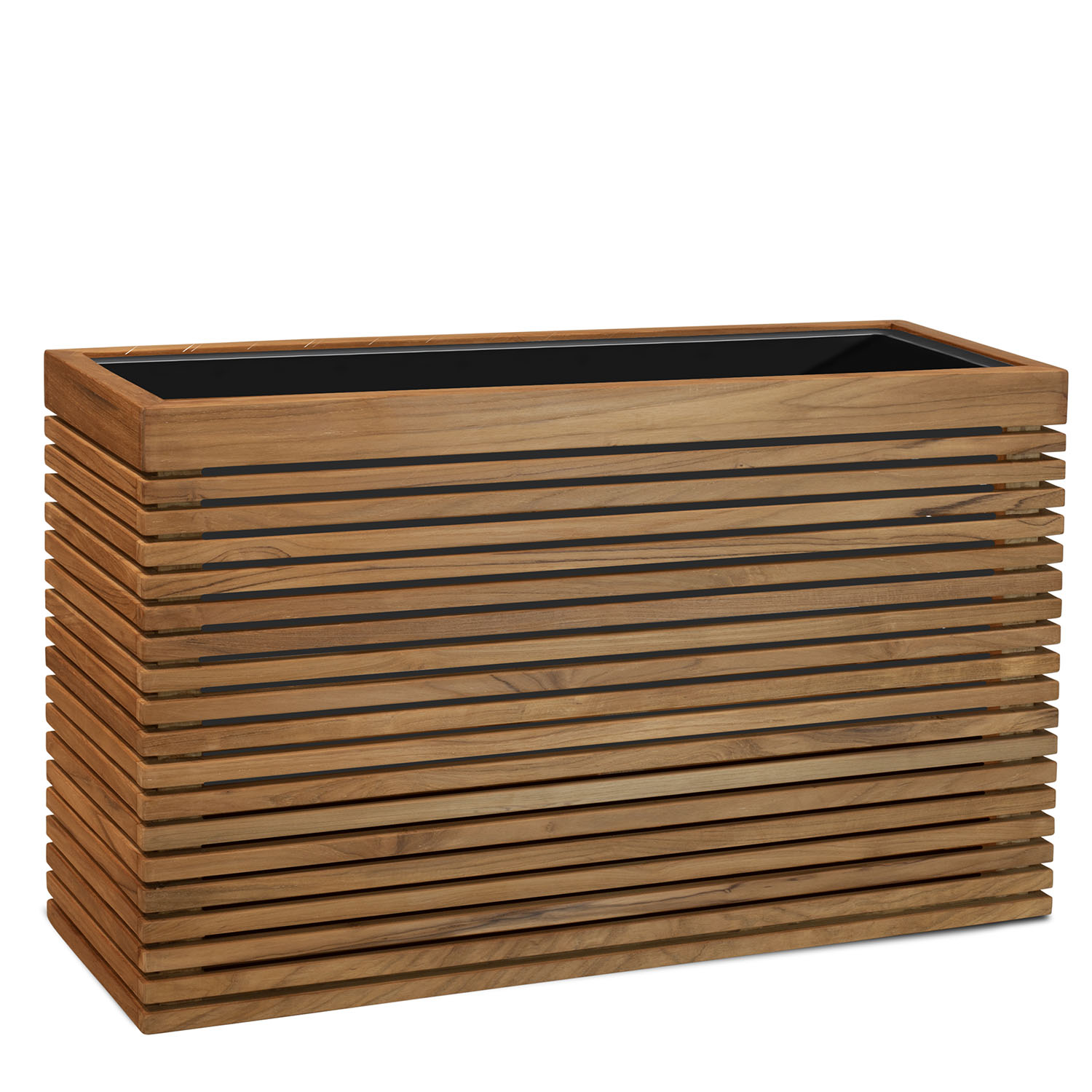 Modulo Raumteiler (100 x 35 x 60 cm) aus Teak-Holz, frostfest, UV-stabil und mit optionalen Rollen, ideal für dekorative Außengestaltung.