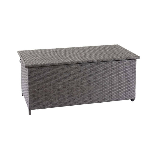 Einsatzbereich: außen · Muster: Uni · Ausführung: Mit Rollen und seitlichen Griffmulden für einfachen Transport · Stil: Modern · Farbe: grau Technische Daten · Belastbar bis: 40 · Fassungsvermögen: 250 Liter · Öffnungssystem: mit Hydraulikfedersystem · Verschlussart: Klappverschluss · Eigenschaften: stabil Maßangaben · Höhe: 51 cm · Breite: 115 cm · Tiefe: 59 cm · Format: Höhe aufgeklappt: 105cm Materialangaben · Material Gestell: Polyrattan, Stahl, pulverbeschichtet · Materialzusammensetzung Bezug: Polyester (180g/m²) 100.00% Funktionen & Ausstattung · Witterungsbeständig: Ja Hinweise · Pflegehinweise: Ganzjährig im Freien aufstellbar · Montagehinweis: Alle Angaben sind ca.-Maße Lieferung · Lieferumfang: 1x Kissenbox · Lieferzustand: zerlegt · Lieferumfang: 1x Kissenbox