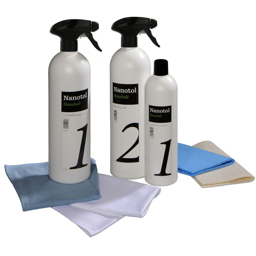 Marke: Nanotol · Farbe: farblos · Einsatzbereich: Wohnbereich · Geruchseigenschaft: geruchsneutral · Gebindeart: Sprühflasche · Geeignet für: langfristige Schutzwirkung · Chlorfrei: Ja · Ökologisch: Ja · Durchgetrocknet nach ca.: 5 min · UN/BAM-Zulassung: Nachhaltiges Produkt · Anwendungsbereich: für gründliche Reinigungsarbeiten Technische Daten · Verarbeitungstemperatur (min.): 5 °C · Viskosität: wässrig · Gebrauchsfertig: Ja · Konsistenz: flüssig · Schützt vor: Schmutz · Geeignet gegen: Schmutzanhaftung Funktionen & Ausstattung · Lösemittelfrei: Ja Inhaltsangaben · Inhalt: 2,5 Liter · Verpackungsinhalt: 500 ml (Step 1) Nanotol Haushalt Cleaner Konzentrat, 1000 ml (Step 2) Nanotol Haushalt Protector für 160 m², 1000 ml Sprühflasche mit bereits fertig gemischten Cleaner (Step 1 – Ready to use), 2 Schwammtücher, 2 Nanotol HighTech Mikrofasertücher, Gebrauchsanweisung Warnhinweise · Gefahrenhinweise (H-Sätze): H319 Verursacht schwere Augenreizung. · Sicherheitshinweise (P-Sätze): …