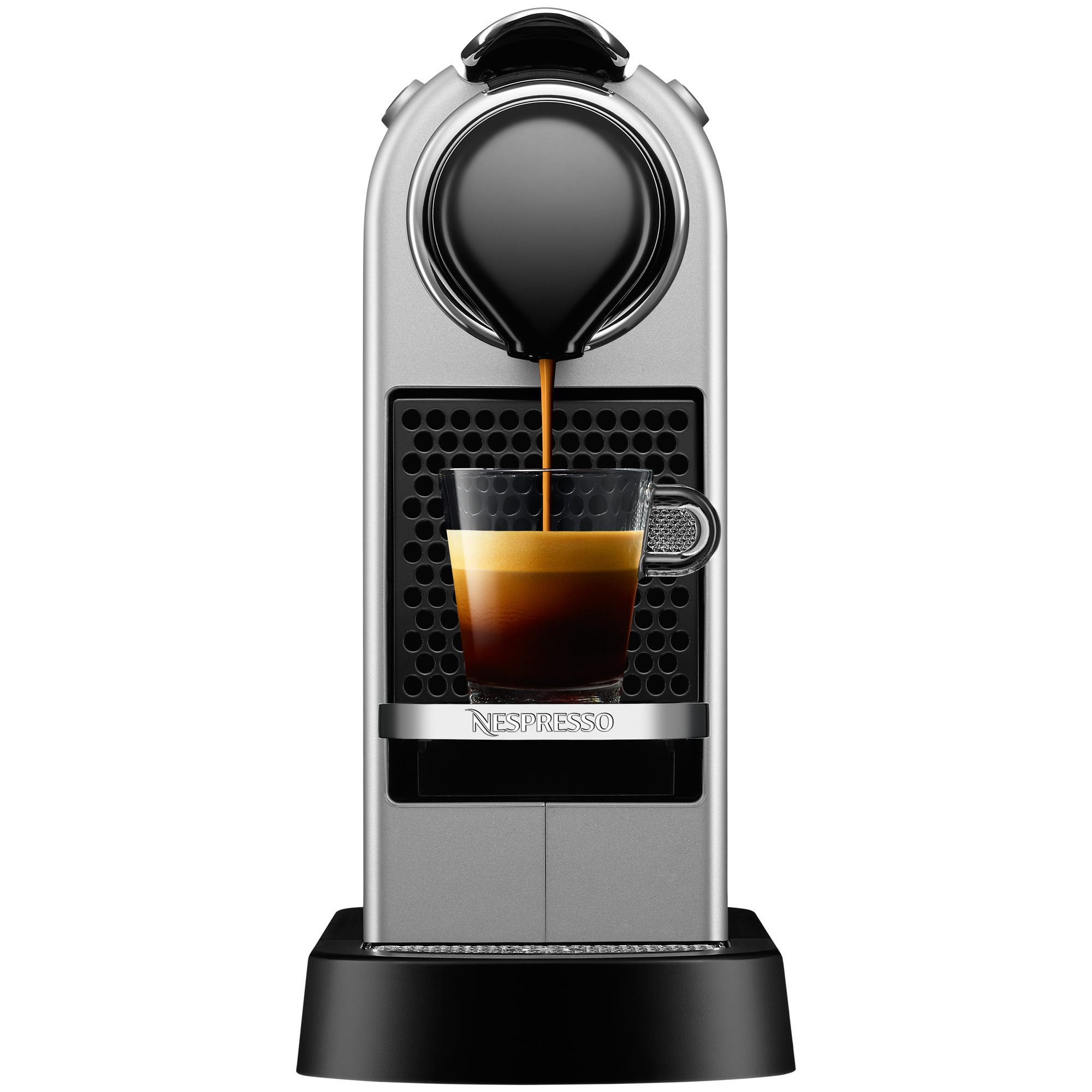 Mit ihrem neuen retro-modernem Design spricht die CitiZ gleichermaßen Nespresso Kaffeeliebhaber sowie Design-Enthusiasten in der ganzen Welt an.Die benutzterfreundlichen Funktionen beinhalten zwei programmierbare Tasten mit automatischen Flow-Stopp für Espresso und Lungo Kaffees sowie eine hochklappbare Tassenabstellfläche für große Tassen oder Gläser.Betriebsbereit in nur 25 Sekunden extrahiert die integrierte 19 Bar-Druckpumpe optimal die Premium-Aromen unserer Kaffees während des Brühhvorgangs und erzeugt die unvergleichlich dichte uns samtige Crema. Die praktische Power-Off-Funktion nach 9 Minuten Inaktivität spart Energie.
