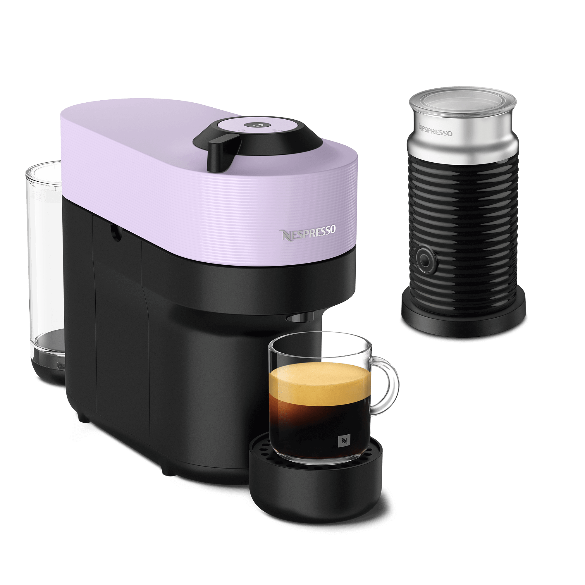 Add a touch of colour to your life with the Nespresso Vertuo Pop machine.Bursting in a range of eight vibrant colours, from Lilac to Pacific Blue, Vertuo Pop makes a bold statement to match your every style. Its sleek and compact design ensures it fits in any environment, whether kitchen or living room. With four cup sizes, from Ristrettos and Espressos to Mugs, simply choose your Nespresso capsule, pop it in, and you’re away at the touch of a button.To keep your coffee adventures spinning, Vertuo Pop uses the patented Centrifusion technology. Reading the barcode on each Vertuo capsule and adjusting the slightest settings to extract the hidden treasures of your coffee. So that you enjoy the ride, time and time again.Vertuo Pop will never slow you down thanks to its state-of-the-art connectivity features. Once connected, your machine will stay up to date, ensuring you get a smooth and consistent coffee experience. As a bonus, you’ll surely appreciate the easy maintenance of your machine, from the comfort of your smartphone.And to reduce its impact on the planet your machine is made from 35% recycled plastic.For a coffee journey, with a pop.