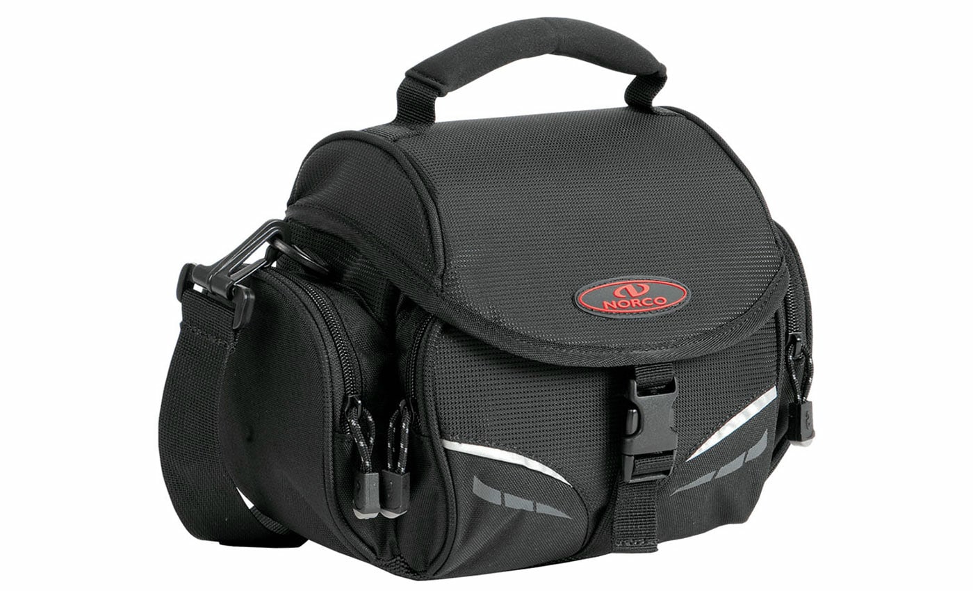 Norco Lenkertasche Ohio in schwarz- Maße: 25 x 18 x 15- Volumen: 5,5 l- Gewicht: 620 g- gefütterte, formstabile Konstruktion- geräumige Front- und Seitentasche- Lenkeradapter Universal, Platte