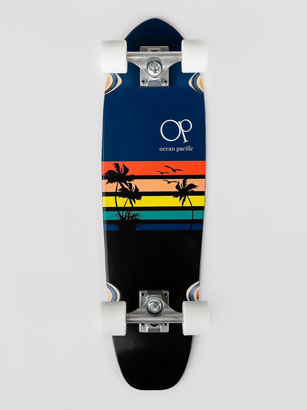 Beach-Vibes garantiert. Der Sunset Cruiser bietet ein komfortables Fahrgefühl in jedem Terrain. Cruiser besitzen die perfekten Eigenschaften, um schnell und gemütlich von Punkt A nach B zu rollen. Das klassische Shape und die großen, weichen Wheels sorgen für ein authentisches Retro-Skate Feeling.Riding StyleBei diesem Komplettboard stehen Fahrspaß und Style an erster Stelle. Egal ob beim Cruisen und Carven durch die City, oder als spaßiges Fortbewegungsmittel.ShapeDas sanfte Concave bietet dir einen sicheren Stand. Die Ausfräsungen am Deck unter jedem Wheel verhindern unangenehme Wheelbites und auch besonders scharfe Kurven sind somit kein Problem.SetupDie Achsen und Wheels perfekt auf das Brett abgestimmt sind. Die weichen Wheels sorgen für besten Grip und Speed, selbst auf rauen Oberflächen. Und dank der breiteren Lauffläche der Wheels, fegst du über Kieselsteine und kleine Ästchen nur so darüber hinweg.
