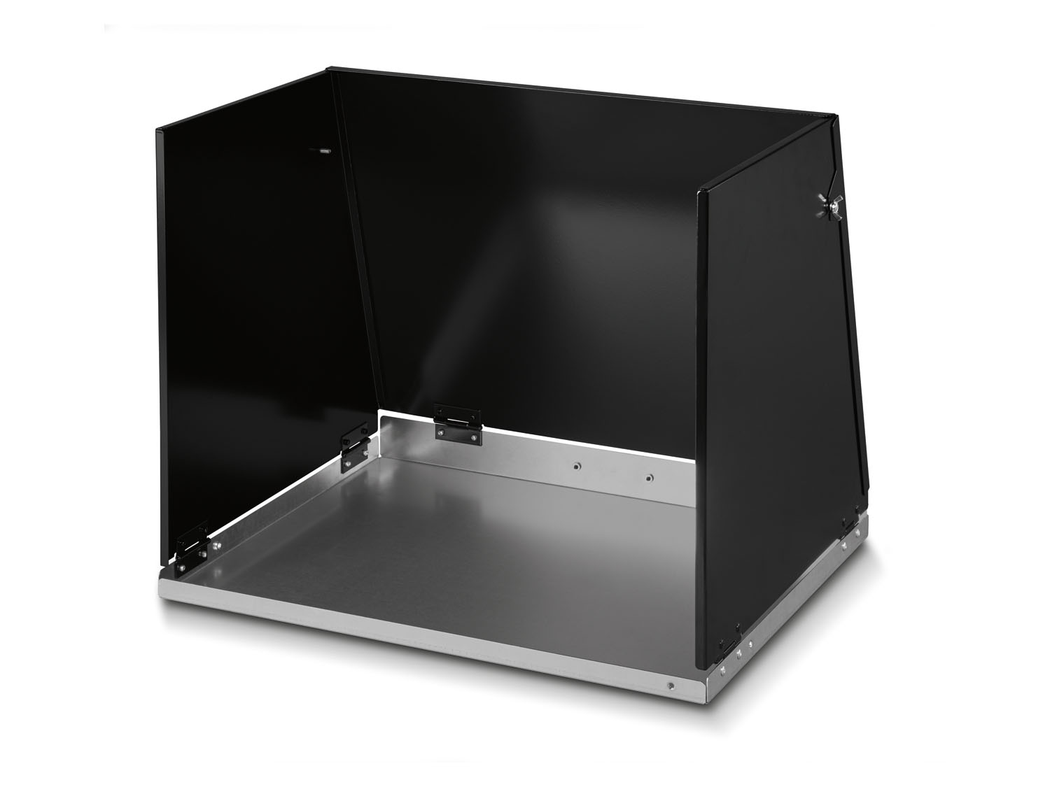 Zum Schutz der Umgebung vor Materialspritzern, Funkenflug und grellem Licht bei Schweiß- und Schleifarbeiten Mobile Box aus rostfreiem Stahlblech mit 0,8 mm Stärke Schneller und einfacher Auf- und Abbau mit Klapp- und Stecksystem inkl. Sicherungsschrauben Mit Masseanschluss an der Schweißkabine zum komfortablen Schweißen ohne Masseklemme direkt am Werkstück Platzsparend zusammenfaltbar und leicht zu transportieren per Tragegriff Einsatzbereich: Schweiß-Schutzzubehör Material rostfreies Stahlblech Maße Maße Arbeitsfläche: ca. 49 x 39 cm Aufgebaut: ca. B 50 x L 40 x H 38,5 cm Gefaltet: ca. B 50 x L 40 x H 4 cm Gewicht ca. 5 kg