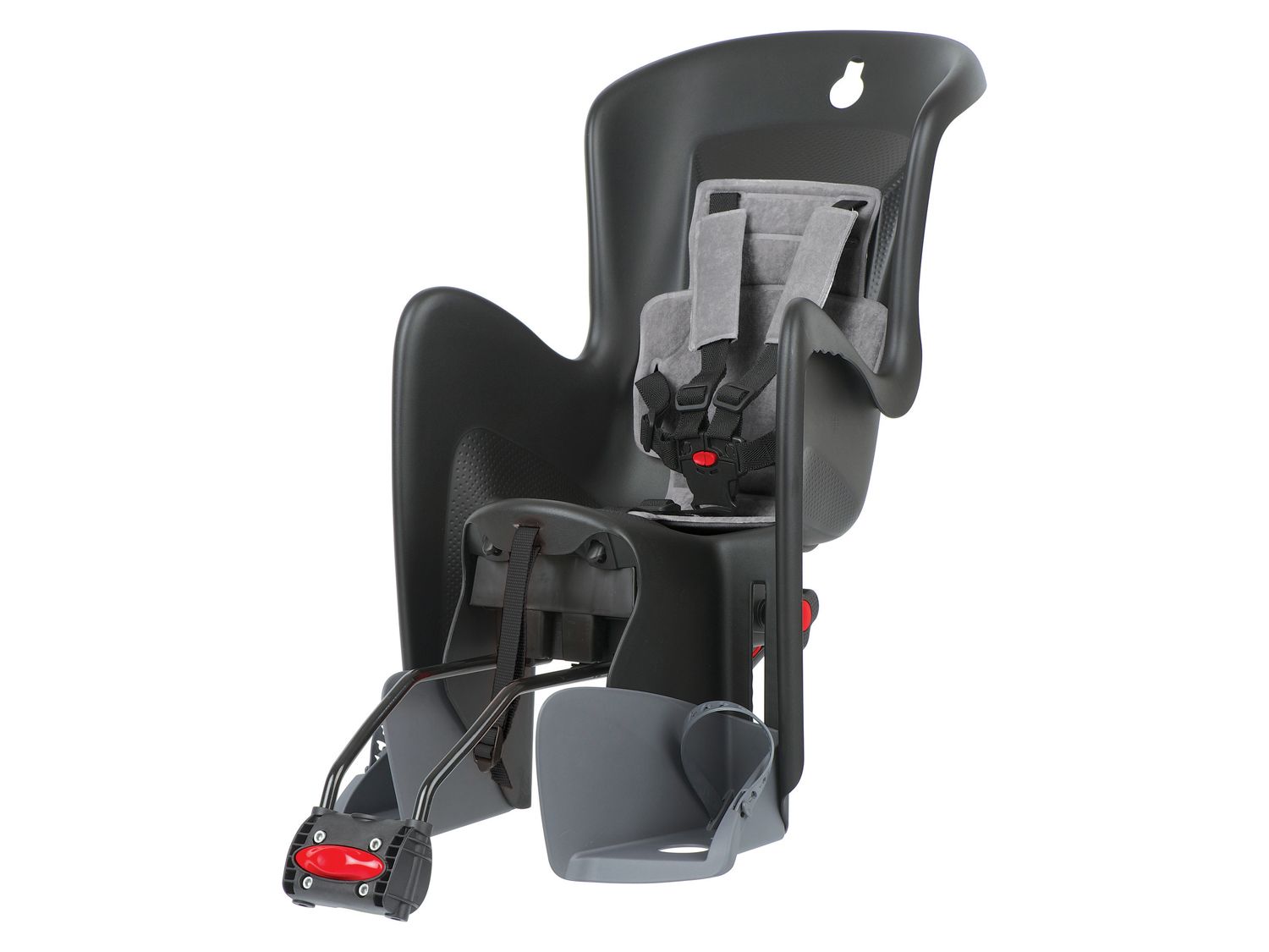 Mit Rahmenbefestigung für hinten Mit verstellbarer Rückenlehne für schlafende Kinder (20°) Für die Sattelrohrmontage, für ovale und runde Rohre Ø 28- 40mm Mit Quick-Release-Halterung Für Kinder ab 9 kg bis 22 kg Körpergewicht Sitzschale aus PP-Vollkunststoff mit integriertem Speichenschutz Sitz wächst mit dem Kind durch verstellbare Fußrasten mit Sicherheitsschnallen 5-Punkt-Sicherheitsgurt mit Schulterpolster Reflektionssticker für bessere Sichtbarkeit bei Dunkelheit Waschbares Sitzpolster Belastbarkeit bis max. 22 kg Maße ca. B 40 x H 76 x T 44 cm Gewicht ca. 4,2 kg