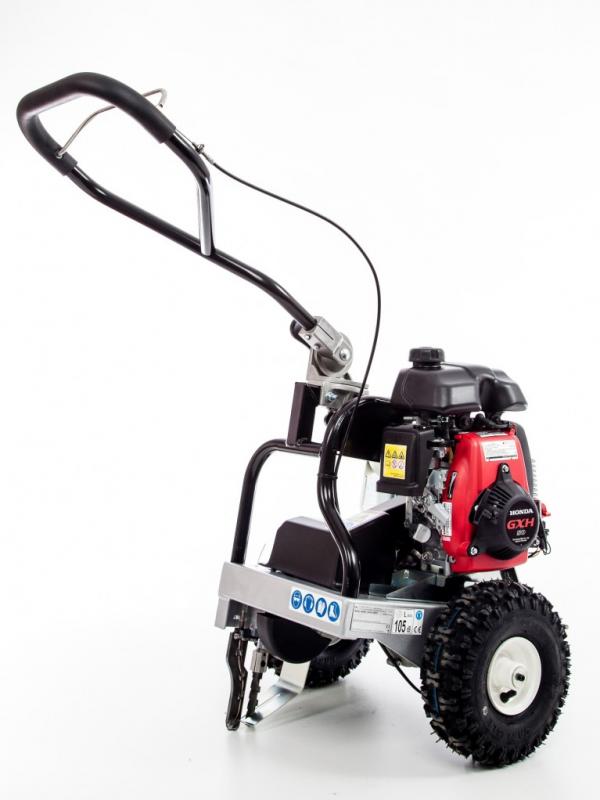 Sein ergonomischer, verstellbarer und seitlich schwenkbarer Multi-Positions-Holm lässt den Anwender das Kabel auch unter Hecken, Sträucher und niedrigen Zweigen installieren! Der hohe Bedienkomfort wird abgerundet durch den Fahrantrieb, angetrieben von einem 4-Takt-Motor von Honda.