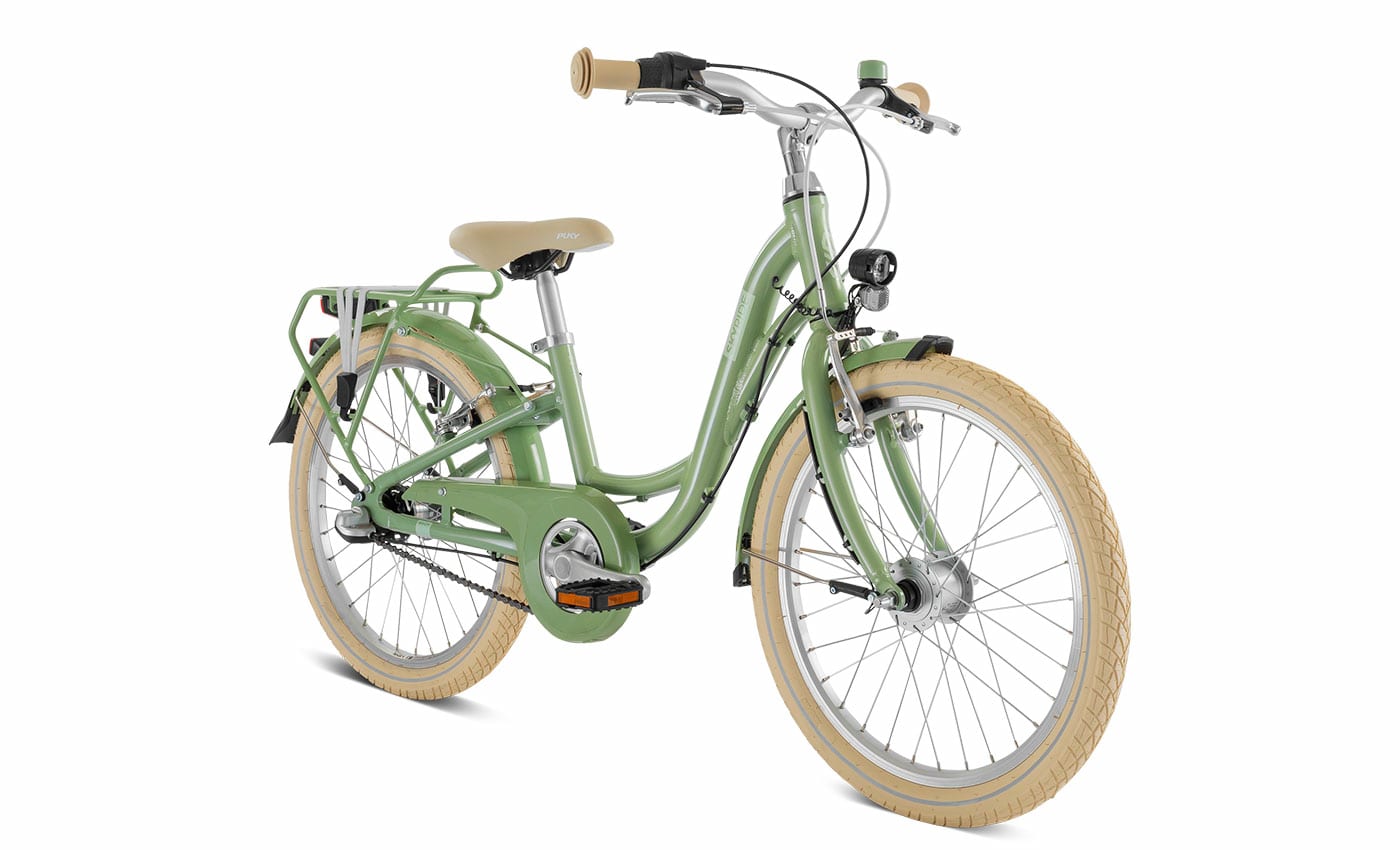 PUKY SKYRIDE 20-3 in retro-green Entdecke das PUKY SKYRIDE 20-3 – Das ultimative Kinderfahrrad für kleine Abenteurer! Mit seinem 20-Zoll-Format ist dieses Fahrrad perfekt für aktive Kinder im Alter von 6 Jahren und älter mit einer Innenbeinlänge ab 53 cm. Das PUKY SKYRIDE 20-3 bietet ein herausragendes Fahrerlebnis und eine erstklassige Ausstattung, die das Radfahren zu einem wahren Vergnügen macht. Das Geheimnis des PUKY SKYRIDE 20-3 liegt in seinem leichten und dennoch robusten Aluminiumrahmen. Dank der hochwertigen Verarbeitung ist es spielend leicht zu manövrieren und gleichzeitig äußerst strapazierfähig. Die leichte Aluminiumgabel sorgt für zusätzliche Stabilität und ein geschmeidiges Fahrverhalten. Die Laufräder mit Aluminiumfelgen und 20 x 1.75 Reifen verleihen dem Fahrrad nicht nur einen tollen Look, sondern bieten auch eine fantastische City-Trekking-Optik. Das Profil-Design der Reifen gewährleistet einen leisen Lauf und ausreichend Stabilität. Zusätzlich sind Reflexstreifen angebracht, um die Sichtbarkeit im Straßenverkehr zu verbessern. Für optimale Bremsleistung ist das PUKY SKYRIDE 20-3 mit V-Brakes für das Vorder- und Hinterrad ausgestattet. So können kleine Radfahrer jederzeit sicher zum Stillstand kommen. Die 3-Gang Freilaufnabenschaltung mit optimaler Übersetzung ermöglicht ein müheloses Schalten und Anpassen der Geschwindigkeit an unterschiedliche Streckenverhältnisse. Die leichten Aluminiumkurbeln und der geschlossene Kettenkasten sorgen für eine reibungslose Fahrt. Mit dem Drehgriffschalter, der eine Ganganzeige bietet, ist das Wechseln der Gänge ein Kinderspiel. Der Schaftvorbau ist besonders langlebig dank seiner langen Verstellfunktion, so dass das Fahrrad mitwachsen kann und für lange Zeit verwendet werden kann. Der breite, nach hinten geneigte Lenker ermöglicht eine optimale Kontrolle und eine komfortable Sitzposition. Der speziell entwickelte Kindersattel des PUKY SKYRIDE 20-3 ist besonders leicht und sorgt für maximalen Komfort auch bei längeren Fahrten. Die Aluminium-Sattelstütze ist einstellbar und zeigt die maximale Auszugslänge an. Dank des tiefen Einstiegs und des schmalen Tretlagers ist das Fahrrad ergonomisch auf die Bedürfnisse von Kindern zugeschnitten. Das PUKY SKYRIDE 20-3 verfügt über eine strapazierfähige Pulverbeschichtung, die es vor Kratzern und Witterungseinflüssen schützt. Das Beleuchtungspaket entspricht den Anforderungen der StVZO und umfasst einen Nabendynamo und einen LED-Scheinwerfer für optimale Sicht und Sicherheit im Dunkeln. Ein Seitenständer und eine Glocke sind ebenfalls im Lieferumfang enthalten. Mach dich bereit für aufregende Fahrradabenteuer mit dem PUKY SKYRIDE 20-3! Mit seiner hochwertigen Ausstattung und seinem ansprechenden Design weckt es die Begeisterung für das Radfahren bei kleinen Abenteurern. Bestelle das PUKY SKYRIDE 20-3 jetzt und lass dein Kind die Welt auf zwei Rädern erkunden!
