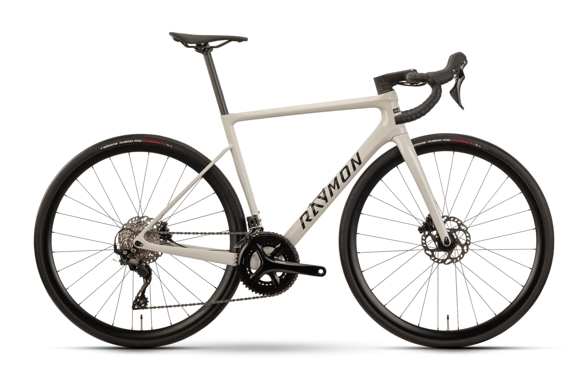 Raymon Kirana light grey stealth 2025 Find Harmony – on Wheels. Helm auf, Klicks an. Schwing dich auf’s Kirana und entfliehe der Realität. Mit dem leichten Carbonrahmen und den komfortablen Continental 30mm Breitreifen rollst du harmonisch über den Asphalt und legst die Kilometer in Rekordzeit zurück. Es ist dein Moment der Ruhe und Konzentration. Eine Zeit, in der du allein mit dem Rhythmus deines Atems und dem Summen des Windes bist. Raymon Design: Built to Last. Das Kirana spiegelt ein Jahrhundert an Fachwissen in Fahrradkonstruktion wider. Es verbindet robuste und leichte Bauweise mit zeitlosem Stil, entwickelt für Langlebigkeit und optimale Performance. Vertraue auf Qualität und handwerkliche Präzision und freue dich auf ein Bike, das dich über Jahre hinweg begleitet. Das Kirana ist somit die perfekte Wahl für anspruchsvolle Radsportler, die keine Kompromisse bei Geschwindigkeit und Komfort eingehen wollen. Spitzenaustattung. No-Bullshit-Garantie. Ein aerodynamisches Cockpit, tubeless-ready Carbon-Laufräder, die effizient rollen und hydraulische Scheibenbremsen mit FlatMount-Standard und 160mm Rotoren für gleichbleibende Bremsleistung. Jedes Detail an Kirana ist darauf ausgelegt, deine Fahrt sicherer und angenehmer zu machen. Tipp: Wenn du noch einen Gang höher schalten magst, dann sind ab dem Kirana Pro alle mit elektrischer Schaltung. Entwickelt für deine Performance. Das Kirana verbindet High-Performance und Komfort auf eine neue Weise: Im Herzen des Kirana schlägt der Rahmen aus MLC Composite. Die integrierte Sattelklemmung absorbiert Vibrationen und sorgt so für erhöhten Komfort, selbst auf langen Strecken. Die Endurance-Geometrie wird durch die runde Carbon Sattelstütze ergänzt, die du ideal auf dich einstellen kannst und jeden Stoß sanft dämpft. Damit hält dich das Kirana in perfekter Balance, egal bei welchem Tempo. Optimale Kontrolle durchhydraulische Scheibenbremsen.Die hydraulische Scheibenbremsen mit FlatMount-Standard und 160mm Rotoren garantieren dir präzises Bremsen unter allen Bedingungen. Carbon Sattelstütze: Komfort auf rauen Straßen.Die Carbon Sattelstütze des Kirana federt die Stöße der Straße ab, sodass du auch auf längeren Touren den Komfort genießt, den du verdienst. Ideal für die Entdeckung neuer Wege ohne Abstriche. Präzise Steckachsen halten dich in der Spur. Mit den Steckachsen vorne und hinten hält das Kirana seine Spur perfekt, selbst in scharfen Kurven oder auf ruppigem Terrain.Bonus: Maximale Flexibilität und Schnelligkeit bei der Radentnahme!