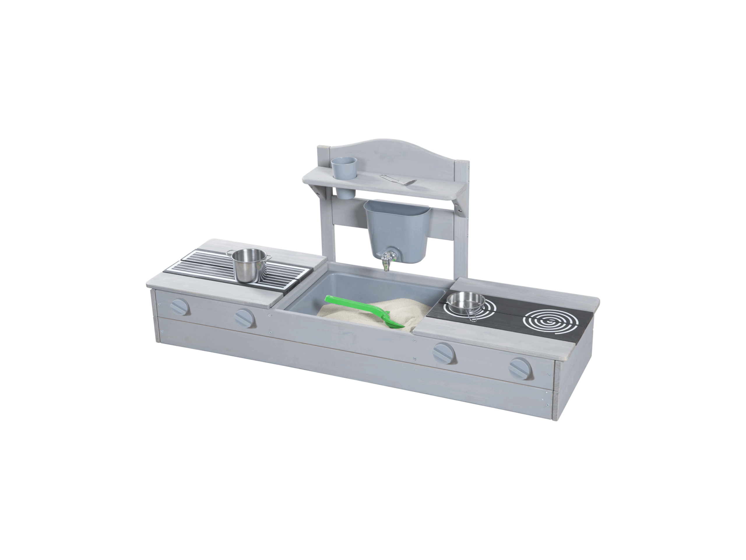 2in1 Höchste Sicherheitsstandards Mit praktischen Staufächern Produktmerkmale table{width:100%;}td{padding-right: 30px; padding: 0.5rem; border-bottom: 0.0625rem solid #e3e4e5;} tr:nth-child(odd) {background-color: #F2F3F4;} Material: Massivholz Einsatzbereich: Garten, Terrasse, Balkon Altersempfehlung: ab 1 Jahr Max. Belastung: keine Angabe Witterungsbeständig: ja Maße: ca. L 116 x B 37 x H 54 cm Gewicht: ca. 6,55 kg Farbe: grau Zubehör: Becher, Wasserbehälter u.v.m Montage: einfacher Selbstaufbau inkl. Anleitung Batterien erforderlich: nein Batterien enthalten: nein Lieferumfang: Balkonsandkasten mit Matschküchen-Funktion; 2 x abnehmbare, bedruckte Sitzplatten (Koch- und Grillfeld) 2 x Staufächer unter den Platten, 1 x Spielwanne aus Kunststoff, 1 x Becher, 1 x Wasserbehälter mit Wasserhahn Warnhinweis: keine Angaben