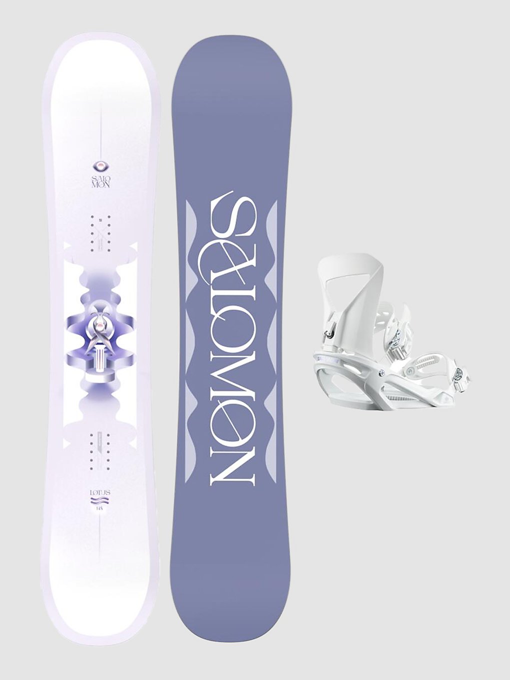 ?EIN KRAFTVOLLES, WENDIGES SPASSPAKET FÜR ALLE BEDINGUNGEN . Das Salomon Lotus bietet einen fahrerfreundlichen Flex und ein fehlertolerantes Flat Out Camber Profil. Zudem verhindern BiteFree Edges ungewolltes Verkanten. Der stabile Aspen Kern und der vielseitige Directional Twin Shape, stehen für höchste Vielseitigkeit, um jeden Aspekt des Berges, ohne Bedenken shredden zu können.Riding StyleDu willst auf dem ganzen Berg Spaß haben? Dieses Board bietet die Stabilität und Performance für schnelle Carving Turns, Powder- oder Park Runs am gesamten Berg. All-Mountain, so wie es sich gehört.ShapeDer Directional Twin Shape ist zentriert, bietet aber einen direktionalen Flex für Power bei hohen Geschwindigkeiten. Der Stance ist leicht von der Mitte nach hinten versetzt. Der Radial Sidecut ist aus einem perfekten Kreis geschnitten, der klassische Sidecut für durchgängiges Ansprechen, egal ob forward oder switch.ProfilFlat Out Camber kombiniert ein flaches Profil zwischen den Bindungen mit Camber-Bereichen unter den Füßen, für maximale Stabilität und guten Kantenhalt.FlexDer weiche Flex ist fehlerverzeihend und sorgt für ein verspieltes Gefühl.KonstruktionDas BiaxGlass bietet einen mittleren, minimal torsionierten Flex und ein fehlerverzeihendes Fahrgefühl. Der extrudierte Belag bietet ein lang anhaltendes Gleitvergnügen, mit minimalem Wartungsaufwand. Der Aspen Kern kommt mit Aspen-Holz aus FSC-Forstwirtschaft über die gesamte Länge mit hochdichten Birkenstreifen für besseren Halt der Inserts. ABS Sidewalls sorgen für eine gute Energieübertragung mit Dämpfungseigenschaften zum Abfangen von Stößen. Bei der Bite Free Kantenschrägung werden die Kanten an Tip und Tail vollständig abgerundet für makellos glatte und fehlerverzeihende Turns ohne zu verkanten.Features BoardDirectional Twin ShapeFlat Out Camber ProfilRadialer SidecutBiaxGlass FiberglasExtrudierte BaseAspen KernABS SidewallsBiteFree Kantenschrägung Salomon Spell Bindung Die Spell ist ein echtes Schnäppchen, jedoch ohne an Qualität einzubüßen. Die leichte, weiche Bindung punktet mit einfachem Handling und hohem Komfort. Sie ist eine perfekte Allround-Bindung für alle, die den ganzen Berg erkunden möchten. Reinsteigen und wohlfühlen!HighbackDas Pact Highback wurde mit einer asymmetrischen, ergonomischen Form ausgestattet, damit deine Boots perfekt in die Bindung passen. Hinzu kommt, dass das gute Stück kaum etwas wiegt und man sie ganz ohne Werkzeug anpassen kann – so kann man auch mal schnell zwischendurch Feineinstellungen an der Bindung durchführen. Der HB Filter filtert optimal unangenehme Vibrationen und Aufprälle, sodass Fuß- und Beinmüdigkeit Schnee von gestern sind.BaseplateDie Zone-Baseplate aus 30 % Verbundmaterial ist langlebig, leicht anzupassen und leicht zu fahren. Die ADJ Toe Ramp ist leicht einzustellen für beste Übertragung an der Zehenkante. Die Universal Disc ist mit allen am Markt verfügbaren Montagesystemen kompatibel. Das Integrated Mounting System (IMS) ist Salomons patentierter Trick, damit deine Disc-Schrauben an Ort und Stelle bleiben, wenn du deine Bindung einstellst oder Boards tauschst.StrapsDie frauenspezifischen Supreme Lite Ankle Straps sind extrem leicht und bequem. Der Torsionsflex gewährleistet guten Halt ohne Druckstellen. Einmal anziehen, und du wirst begeistert sein. Die Lock-Up Toe Straps greifen den Schuh besser als eine einfache Schale und sichern dein Set-up. Die Straps lassen sich einfach und ohne Werkzeug verstellen.