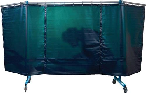 Schutzwand TransFlex H.1950mm B.2100mm 3-teilig,fahrbar T75 dunkelgrün,ma SINOTEC · 3-teilig · fahrbar · ISO 25980 · flexibel an wechselnde Schweißsituationen anpassbar · preiswerter Schutz als Einzelwand · ideal auch als Kombination mehrerer Wände · einfach zu montieren · für fast alle Schweißarbeitsplätze einsetzbar · Produktdetails: Rahmen blau pulverbeschichtet · Rohre grau pulverbeschichtet · Mittelteil: B 2100 x H 1950 mm · 2 Ausleger á 800 mm · Gesamtbreite: 3700 mm · 4 Rollen mit 100 mm Durchmesser, davon 2 mit Bremsen · 3 Vorhänge 0,4 mm (B 1300 x H 1600 mm) · Befestigung mit Karabinerhaken (19 Stück / Schutzwand) · Bodenfreiheit 300 mm