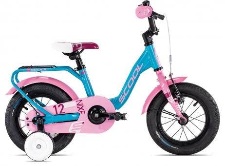 Die Schutzbleche und der geschlossene Kettenkasten verhindern Verunreinigungen an der Kleidung und der direkte Zugriff auf den Antrieb wird verhindert., Abrutschsichere Griffe runden die sichere Ausstattung des niXe 12 alloy ab., Dazu erhöhen die mitgelieferten Stützräder die Standsicherheit und geben ein sicheres Gefühl auf den ersten Fahrversuchen., Der etwas leichtere Aluminiumrahmen bietet zusammen mit dem fest verschweißten Gepäckträger eine besonders hohe Stabilität., SCool empfiehlt das knapp 9 kg leichte niXe 12 alloy Kinderfahrrad ab ca. 3 Jahren bei einer Körpergröße ab 99 cm., Fast noch ein Dreirad, gefällt das kleine SCool niXe 12 alloy mit seinem schön gestalteten Design und seiner robusten Bauweise., Fein designt, ein bewusster Verzicht auf eine komplexe Schaltanlage und ein etwas leichterer Aluminiumrahmen: Das SCool niXe 12 alloy 12 Zoll Kinderfahrrad begeistert Klein wie Groß.
