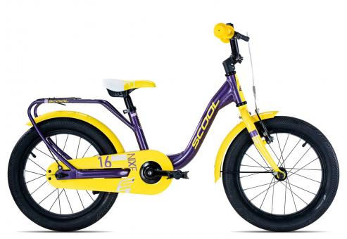 Das hübsche SCool niXe Alloy 16 gehört seit Jahren zu den Favoriten kleiner Prinzessinnen vom deutschen Anbieter SCool., Ein 1-fach Antrieb mit gekapseltem Kettenkasten und Rücktrittbremse überfordert die Kids nicht und schützt vor Verletzung., Was Kids auf Ihren Touren brauchen, ob Schnuffeltier oder Körbchen, findet auf dem praktischen Träger mit Federklappe Platz., Die tollen Farbakzente und aktuellste kindergerechte Details sprechen für sich., Der gewichtsoptimierte Tiefeinstieg-Rahmen aus Aluminium ist die Basis., Die einfach zu bedienende V-Bremsen verzögert per Bremskraftmodulator normgerecht und lässt sich auf Kinderhände leicht von der Weite einstellen., Werden keine Stützräder mehr benötigt, können Mädchen ab ca. 105 Zentimeter Körpergröße oder ab etwa 3 Jahren hier voll durchstarten., Die bullige Reifenbreite von 50 Millimeter verleiht dem SCool niXe Alloy 16 eine putzige Cruiser-Optik und bietet komfortable Dämpfung., Die