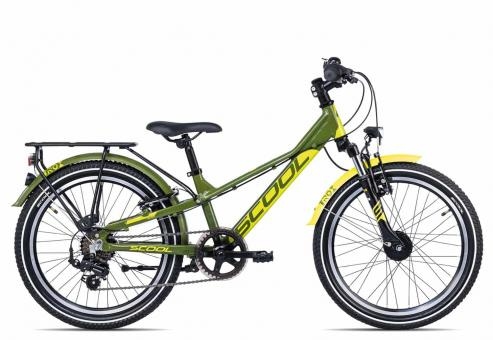 Ganz wie die Erwachsenen-Trekkingfahrräder, werden die 20 Zoll Laufräder per kindegerechter Bremshebel und V-Bremsen verzögert., Die Schutzbleche verhindern Verunreinigungen an der Kleidung, und besonders praktisch: Der Gepäckträger ist kompatibel mit dem Basil MIK Klicksystem., Rundum verkehrssicher, mit MIK-Systemgepäckträger und ein etwas leichterer Aluminiumrahmen: Das vollausgestattete SCool troX EVO alloy 20 7-S Kinderfahrrad., Ein kleines 20 Zoll Kinderfahrrad mit voller Straßenausstattung und besonders sportivem Offroad-Look: Das SCool troX EVO alloy 20 7-S., Der etwas leichtere Aluminiumrahmen bietet eine hohe Stabilität bei geringerem Gewicht., Mit seiner LED-Lichtanlage samt Nabendynamo lässt sich dieses 20 Zoll Kinderfahrrad immer, ohne zusätzliche Anstrengung, mit eingeschaltetem Licht fahren., SCool empfiehlt das knapp unter 13 kg leichte troX EVO alloy 20 7-S Kinderfahrrad ab einem Alter von ca. 6 Jahren bei einer