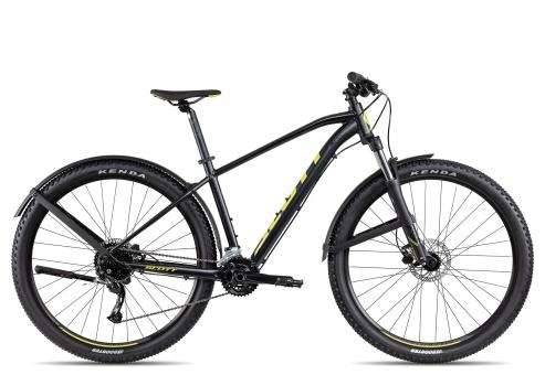 Per Shimano Rapidfire-Plus Schalthebel, kannst du die insgesamt 18 Schaltstufen sportiv anwählen., Dank der großen 29 Zoll Laufräder besitzt das Scott Aspect 950 EQ gute Überrolleigenschaften und mit seiner lockout Federgabel fährst du schneller auf Tempoetappen und am Berg., Das schnelle Scott Aspect 950 EQ zeigt sich als 29 Zoll bereiftes Einstiegs-Hardtail mit lockout-Federgabel, bereits ab Werk ausgerüsteten Schutzblechen und Ständer., 2×9 Gänge stellt dir die Shimano Schaltung zur Verfügung., Dazu kannst du sie per lockout ganz einfach feststellen und verschwendest keine Energie in die Tauchrohre., Mit 100 mm Federweg dämpft die SR Suntour XCT Federgabel ordentlich auf Feldwegen und Schotterpisten., Das namensgebende EQ steht hierbei für “equipped” und erspart dir direkt den Zukauf von Schutzblechen und Seitenständer., Zusammen mit der 2,4 Zoll breiten Kenda Booster Bereifung und den Tektro Hydraulikbremsen lässt sich das Scott