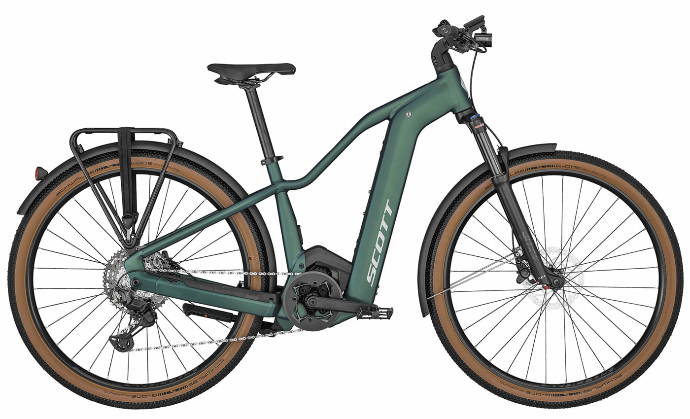Scott Axis eRIDE EVO Tour Lady in Green Ob Pendelverkehr oder Wochenendtouren Das Axis eRIDE EVO Tour ist das ideale All-Terrain-Bike. Du musst nur den Akku aufladen, deine Strecke wählen und dich sonst um nichts kümmern. Die volle Integrierung von Akku, Kabel, Lichter und Schmutzfänger verleihen dem neuen Axis einen äußerst eleganten und dynamischen Look. Der leistungsstarke Bosch Performance Line CX in Kombination mit dem 750 Wh Akku lassen dich nie im Stich und ermöglichen dir stundenlange Erkundungstouren. Willst du extra Ausrüstung mitnehmen? Kein Problem! Ab damit auf den Gepäckträger und los geht’s!