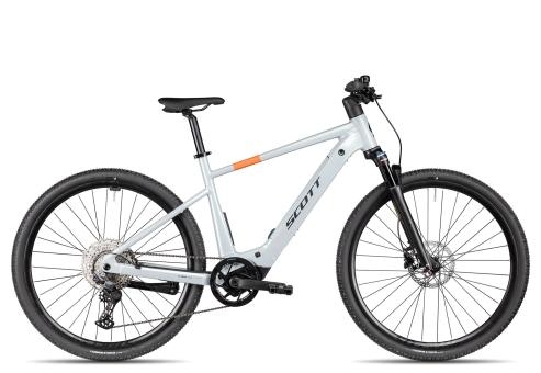 Das extraleichte Scott Passage 20 präsentiert sich als minimalistisches Allroad-E-Bike., Shimano Scheibenbremsen, 50 mm breite Schwalbe G-One Reifen und eine feststellbare und gut einstellbare Luftkammer-Federgabel lassen dich auch auf schlechten Radwegen und Schotterpisten die Kontrolle behalten., Knapp über 20 kg leicht und mit einem kraftvollen Bosch SX E-Bike Antrieb ausgestattet: Das pure Scott Passage 20., Den SX Motor steuerst du über das farbige Purion 200 Display am Lenkergriff., Mit 400 Wh ist der Akkus zwar nicht auf Ausdauer getrimmt, dafür schön leicht und in der Stadt und auf kleineren Touren vollkommen ausreichend., Geschaltet wird das Passage 20 mit einer wertigen Shimano Deore 12-Gang Schaltung., Der Bosch E-Antrieb des Passage 20 vereint Leistung und einfache Bedienbarkeit., Federnd gibt dir die 75 mm Gabel Fahrkomfort, festgestellt lässt es sich mit dem Scott Passage 20 light-Urbanbike leichter Tempo aufnehmen.