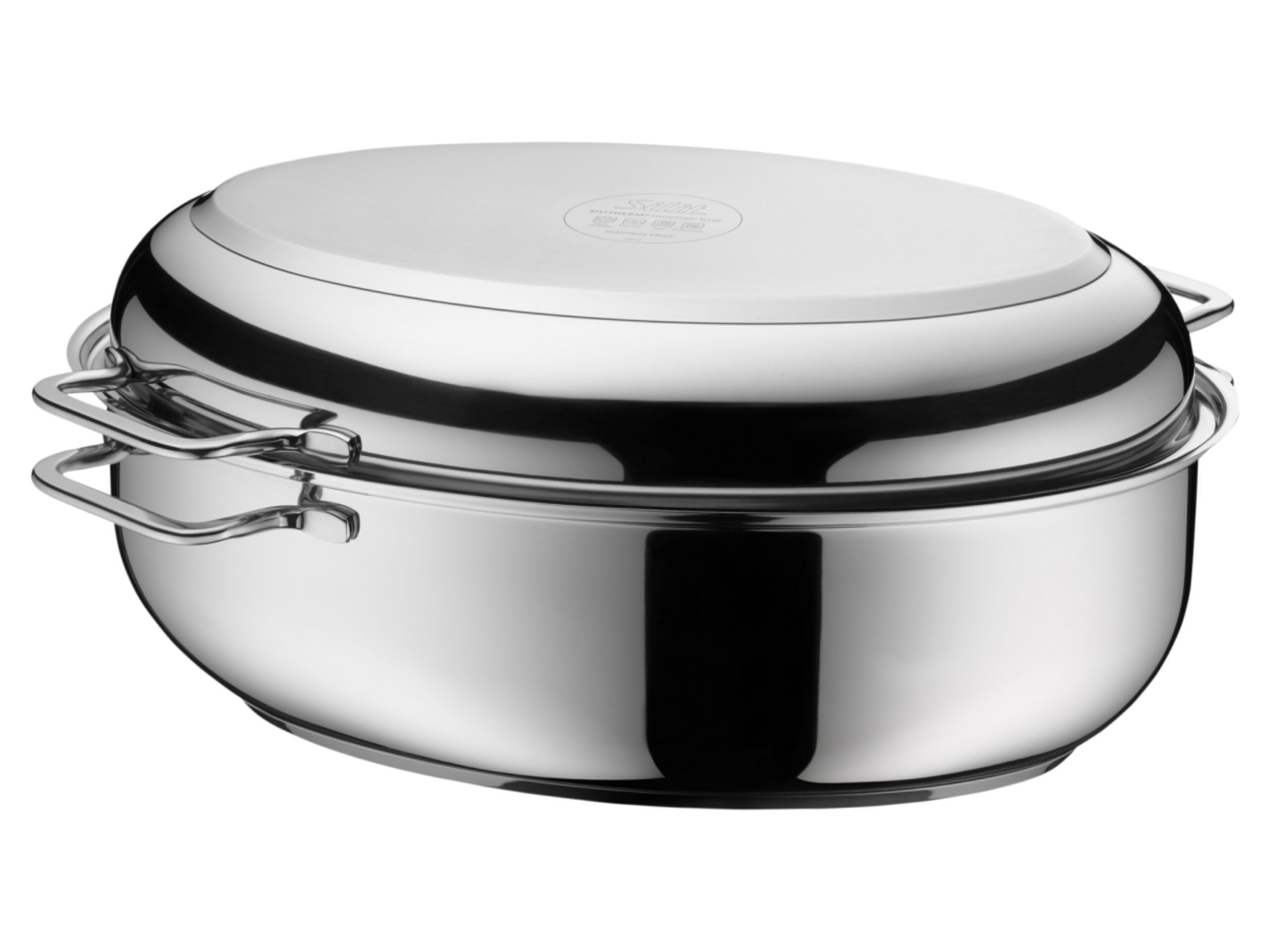 Multifunktional in der Küche: Auflaufform oder Gänsebräter; der Deckel als Bratpfanne – der Multibräter eignet sich zum Kochen, Braten auf dem Herd oder Schmoren im Backofen. SILITHERM®-Allherdboden Geeignet für alle Herdarten, inkl. Induktion. Gleichmäßige Wärmeverteilung und lange Wärmespeicherung für energiesparendes Kochen Der Deckel ist als induktionsgeeignete Edelstahl-Pfanne nutzbar. Pflegeleicht, rostfrei und spülmaschinenfest Formstabil und unverwüstlich Geschmacksneutral und beständig gegen Speisesäuren Backofengeeignet und hitzebeständig bis 250° C Produktmerkmale table{width:100%;}td{padding-right: 30px; padding: 0.5rem; border-bottom: 0.0625rem solid #e3e4e5;} tr:nth-child(odd) {background-color: #F2F3F4;} Bestandteile: Topf + Deckel Form: oval Material: Edelstahl Wärmeleitfähigkeit: ja Bodenstärke: keine Angabe Beschichtung: Edelstahl Deckel: ja Griff: ja Schüttrand: keine Angabe Geeignet für: alle Herdarten, inkl. Induktion Hitzebeständigkeit: bis 250° C Nutzvolumen: ca. 7,7 l Mess-Skala: keine Angabe Made in Italy: keine Angabe Spülmaschinengeeignet: ja Maße: ca. L 41,5 x B 31,5 x H 17,5 cm
