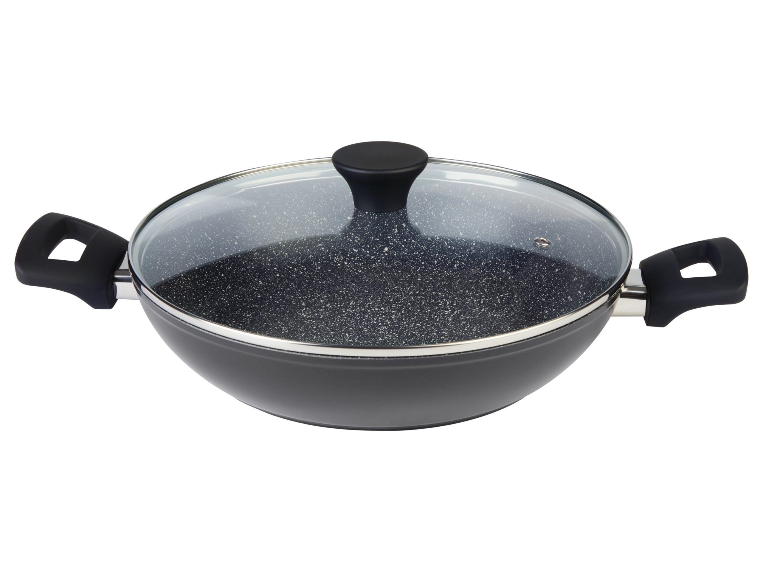 Zum gesundheitsbewussten, fettarmen Braten Maximizing-Green-Beschichtungen sind frei von GenX-Technologie und werden ohne Schadstoffe hergestellt. Mit Antihaftbeschichtung aus dem Hause Ilag® Sehr strapazierfähig und langlebig Kratz- und hoch abriebfest Hergestellt aus Aluguss Glasdeckel mit Edelstahlrand und Dampfauslass Zwei ergonomische Soft-Touch-Seitengriffe für sichere und komfortable Handhabung Geeignet für alle Herdarten – inkl. Induktion Ofenfest bis 160 °C Spülmaschinengeeignet Produktmerkmale table{width:100%;}td{padding-right: 30px; padding: 0.5rem; border-bottom: 0.0625rem solid #e3e4e5;} tr:nth-child(odd) {background-color: #F2F3F4;} Bestandteile: Pfanne, Griffe, Deckel Material: Aluminium-Körper; Aluminiumboden mit eingelassener Induktionsplatte aus Edelstahl Wärmeleitfähigkeit: keine Angabe Bodenstärke: ca. 6 mm Beschichtung: Antihaftbeschichtung aus dem Hause Ilag® Deckel: ja; aus Glas Griff: ja, 2 Ausgießer: keine Angabe Schüttrand: nein Geeignet für: alle Herdarten – inkl. Induktion Hitzebeständigkeit: bis 160 °C Nutzvolumen: ca. 2,4 l Mess-Skala: nein Zubehör: keine Angabe Durchmesser: ca. Ø 28 cm Pfannentiefe: keine Angabe Spülmaschinengeeignet: ja