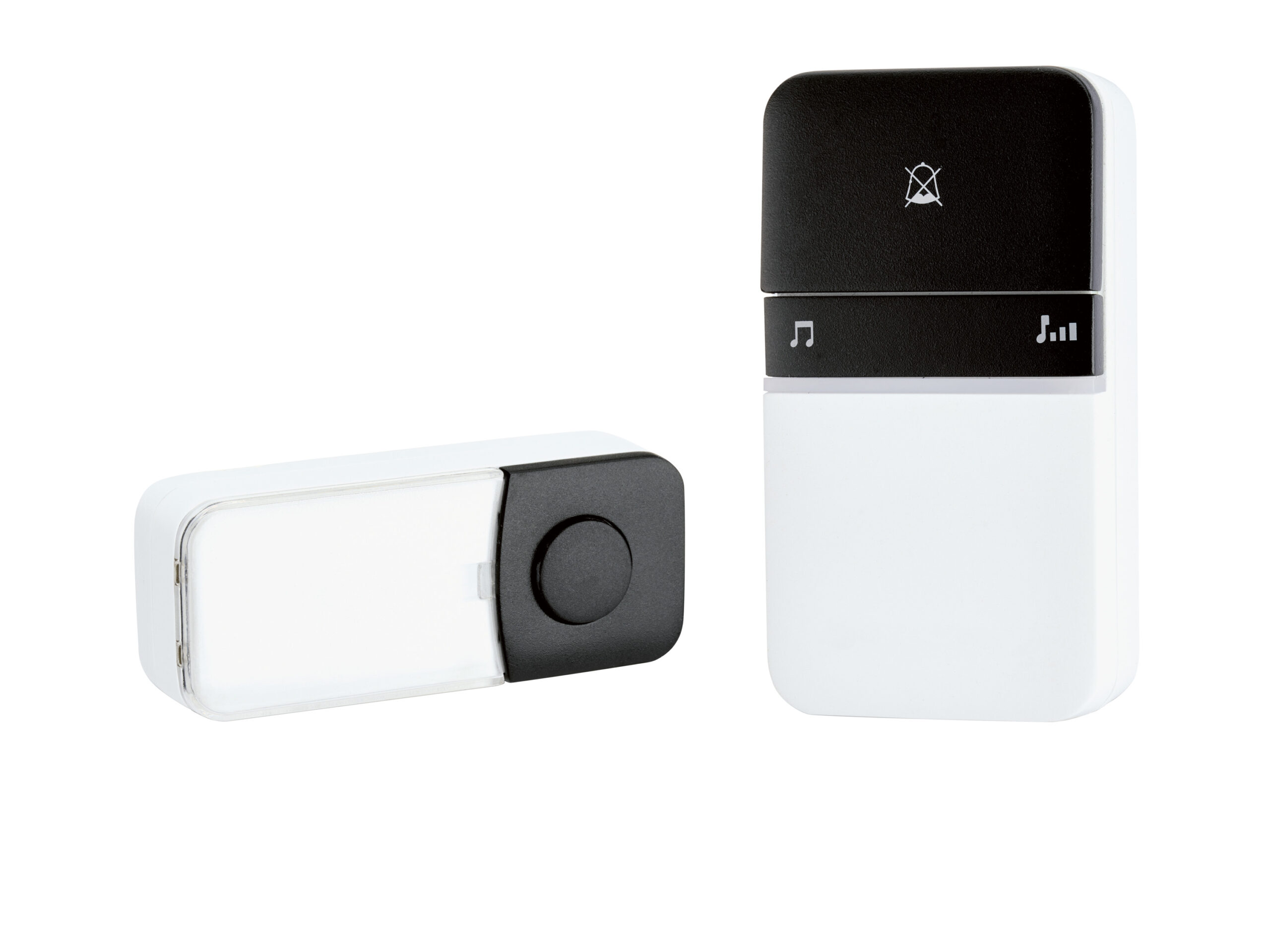 2 Signaloptionen: visuell, akustisch + visuell Kinetisch – keine Batterie erforderlich 16 Klingeltöne und 4-stufige Lautstärkeregelung Sender spritzwassergeschützt gemäß Ipx4* Reichweite: 100 m (im Freien) Mit Empfänger zum praktischen Einstecken in die Steckdose Mit 2 LEDs (für Signal- und Synchronisationsmodusanzeige) Frequenz: 433 MHz Inkl. Montagematerial, austauschbaren Namensschildern, Anleitung und Quick Start Guide