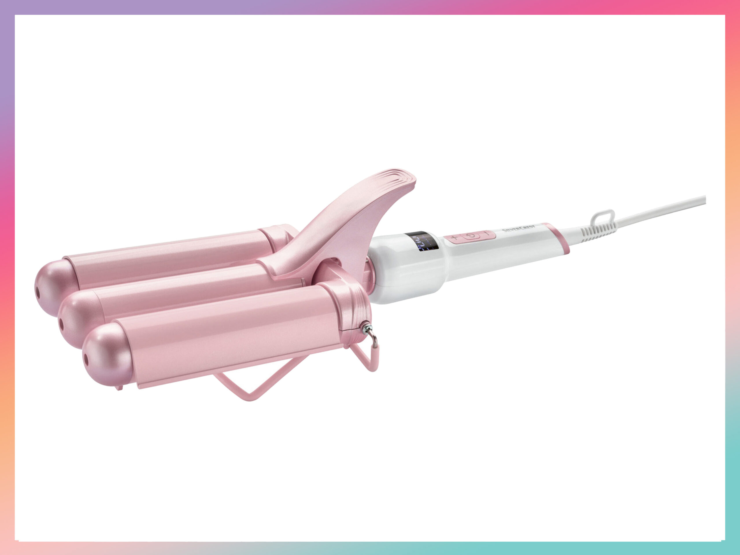 Für angesagte und definierte Beach Waves Dreifach-Waver für ein gleichmäßiges Wellenergebnis 32-mm-Heizstäbe kreieren einen besonders natürlichen Look Keramik-Turmalin-Beschichtung für glänzendes und geschmeidiges Haar 11 einstellbare Temperaturen (100-200 °C) für jeden Haartyp Breite Fläche (120 x 125 mm) – stylt besonders viel Haar in einem Schritt Mit kalter Spitze und Anti-Rutsch-Halterung für sichere Handhabung Automatische Abschaltung nach ca. 30 Minuten 360°-Kabelgelenk mit Aufhängeöse LED-Temparaturanzeige Inklusive Handschuh für das Haarstyling Produktmerkmale table{width:100%;}td{padding-right: 30px; padding: 0.5rem; border-bottom: 0.0625rem solid #e3e4e5;} tr:nth-child(odd) {background-color: #F2F3F4;} Leistung: 145-155 W Min. Temperatur: 100 °C Max. Temperatur: 200 °C Temperaturstufen: 11 Funktionen: Automatische Abschaltung, kalte Spitze und Anti-Rutsch-Halterung Gebläsestufen: – Farbe: rosa/weiß Ausstattung: mit 360°-Kabelgelenk mit Aufhängeöse und LED-Temparaturanzeige Material: Aluminium, Kunststoff Maße: ca. 39 x 14 x 8,5 cm Gewicht: ca. 720 g Lieferumfang: Welleneisen, Handschuh