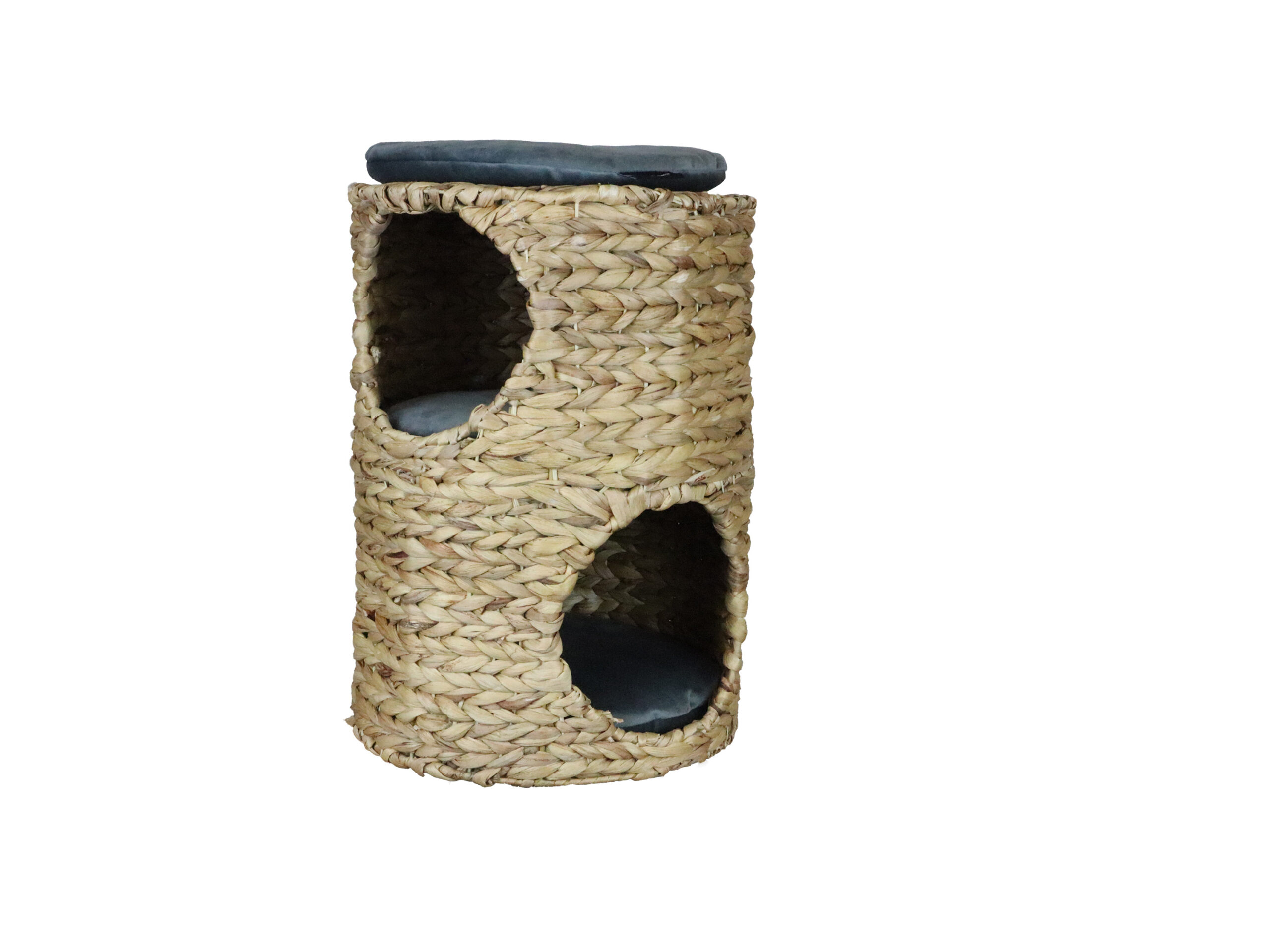 Ideale Ergänzung zum Kratzbaum Mit natürlicher Wasserhyazinthe 3 Ebenen mit zwei Eingängen (Ø je 18 cm) Inkl. 3 waschbaren Kissen mit hochwertigem Bezug Produktmerkmale table{width:100%;}td{padding-right: 30px; padding: 0.5rem; border-bottom: 0.0625rem solid #e3e4e5;} tr:nth-child(odd) {background-color: #F2F3F4;} Typ: Katzenturm Ebenen: drei Outdoor geeignet: nein Pflegehinweise: Kissenbezug herausnehmbar Material: Metallgestell, Geflecht: Wasserhyazinthe – Kissenfüllung Vlies: 100 % Polyester – Kissenbezug: 100 % Polyester Maße (LxBxH): ca. 32 x 32 x 45 cm Gewicht: ca. 2,5 kg Lieferumfang: 1 Korb (2 Eingänge Ø 18 cm), 3 Kissen (Ø 29 cm)