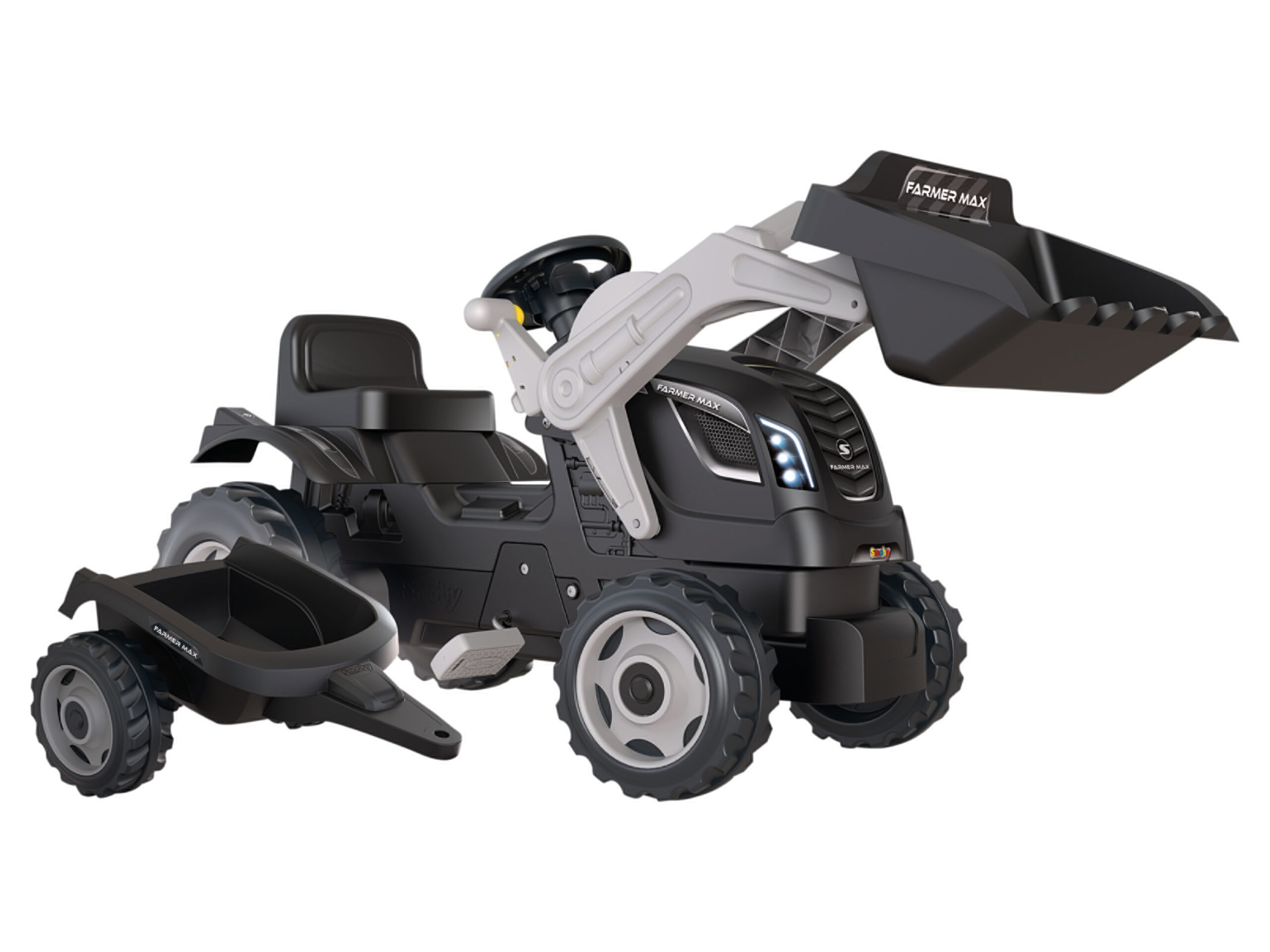 Der Smoby Life Traktor Farmer Max besteht zu 90% aus Recycling-Kunststoff und ist für Kinder ab 3 Jahren geeignet Der Traktor hat eine moderne Optik und gute Fahreigenschaften mit Drehschemellenkung und Integralkettenantrieb Robuste Kunststoffräder; kindgerechte Pedale und ein verstellbarer Sitz sorgen für viel Fahrvergnügen Die Ladeschaufel hat ein Ladevolumen von 3 kg und der Anhänger eine Belastbarkeit von bis zu 25 kg Der Traktor wird in Frankreich produziert und gehört zur nachhaltigen Smoby Life Kollektion Sicherheit, Langlebigkeit und Nachhaltigkeit stehen bei den Smoby Life Produkten im Vordergrund Mit Liebe in Frankreich hergestellt Produktmerkmale table{width:100%;}td{padding-right: 30px; padding: 0.5rem; border-bottom: 0.0625rem solid #e3e4e5;} tr:nth-child(odd) {background-color: #F2F3F4;} Anzahl Sitzplätze: 1 Altersempfehlung: ab 3 Jahren Max. Belastung: Anhänger mit geräumiger Ladefläche; bis zu 25 kg belastbar Ausstattung: Pedalantrieb, Räder mit Gummi, Anhänger Bereifung: Gummi Bremse: Keine Antrieb: Pedalantrieb Material: Kunststoff (90 % recycelt) Maße: ca. L 182 x B 44 x H 62 cm Gewicht: 8,6 kg Batterien erforderlich: nein Batterien enthalten: nein Lieferumfang: 1x Traktor mit Anhänger Warnhinweis: Achtung! Nicht geeignet für Kinder unter 3 Jahren. Erstickungsgefahr durch Kleinteile.