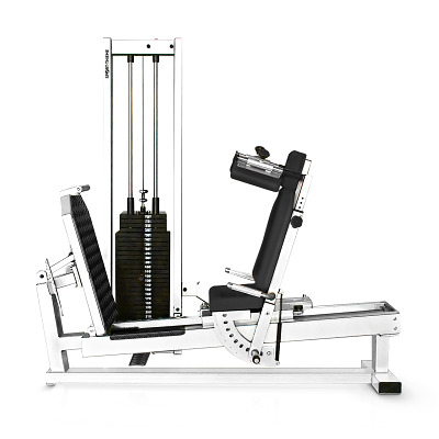 Mit der Sport-Thieme Beinpresse SQ, sitzend bauen Sie effektiv Beinmuskeln auf – Die robuste Sport-Thieme Beinpresse SQ, sitzend ist mit einer verstellbaren Fußplatte, einem einstellbaren Sitz, sowie verstellbaren Schulterpolstern versehen – somit ist das Trainingsgerät ideal für den Einsatz im Fitnessstudio geeignet. Jeder Trainierende stellt sich die Beinpresse auf seine Bedürfnisse ein. Die strukturierte Fußplatte ist besonders rutschhemmend, wodurch Sie sich beim Fitness-Training perfekt abdrücken. Die Schulterpolster sorgen dafür, dass Sie Ihren Oberkörper wenig einsetzen und der Fokus auf dem Oberschenkel-, Beinbizeps- und Gesäßmuskel-Training liegt. Je nach Stellung Ihrer Füße beanspruchen Sie auch Ihre Wadenmuskulatur optimal. Besonders praktisch: Die einstellbaren Gewichtsblöcke lassen das Training für Einsteiger, genauso wie für die Profis zu.