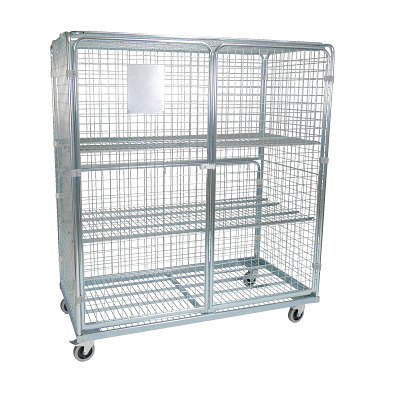 Sport-Thieme Regalwagen XXL: sofort nach Lieferung einsatzbereit – Der Sport-Thieme Regalwagen XXL besteht aus einem engmaschigen Drahtgitter, das den Inhalt effektiv vor unerlaubten Zugriff schützt. Der Rollbehälter ist 5-seitig geschlossen. Auch die Türen lassen sich mithilfe eines Bügelschlosses verschließen (nicht im Lieferumfang enthalten). Die Einlegeböden hängen Sie einfach in den Seitengittern ein und schaffen so bei Bedarf noch mehr Ablagefläche. Durch die Maschung von 50×50 mm können Sie alle 50 mm einen weiteren Zwischenboden einlegen. 2 der 4 Lenkrollen verfügen zudem über Feststeller, die ein Wegrollen des Wagens verhindern. – Produktdetails: – Material: Stahl (galvanisch blau verzinkt), Kunststoffschellen – Außenmaß (BxHxT): 160x182x80 cm – Innenmaß (BxHxT): 155x160x75 cm – Fahrrahmen: Rechteckrohr (40×20 mm) – ø Rundrohr: 22 mm – Drahtausfachung: 50x50x4 mm – 2 Seitenwände, 1 Rückwand, 2 Türen, 1 Dach – 4 Transportrollen, davon 2 mit Feststellern – Inkl. 2 Einlegeböden