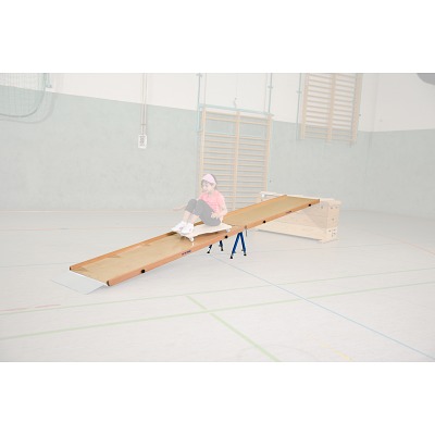Sport-Thieme Sprungkasten-Set 2 für Schiefe Ebene: Doppelter Spaß mit doppelter Strecke – Mit dem Sport-Thieme Sprungkasten-Set 2 für Schiefe Ebene kann eine bereits vorhandene schiefe Ebene beidseitig auf 120 cm Breite bzw. 416 cm Länge ausgebaut werden. Es können fast alle Rollbretter benutzt werden. Mithilfe der zum Lieferumfang gehörenden Scharnierstifte werden die Ebenen verbunden oder am Startplateau befestigt. Zur Verlängerung der Ebenen werden zwei höhenverstellbare Untersetzböcke aus einer stabilen Stahlrohrkonstruktion genutzt. Ein absatzfreier Übergang und ein Fußbodenschoner an den Untersetzböcken schonen den Hallenboden. Ohne großen Aufwand und Werkzeuge können Sie die Bahnen seitlich verbinden, sodass Sie eine Breite von 120 cm haben. – Produktdetails: – Rollbrettbahnfläche: 2x ca. 214×68,5×10 cm – Belastbarkeit: bis ca. 90 kg – Material: Untersetzböcke aus Stahl, Rollbrettbahn: Birke-Multiplex-Holz – Untersetzböcke in 3 Höhenstufen: ca. 38 cm, 44 cm, 49 cm