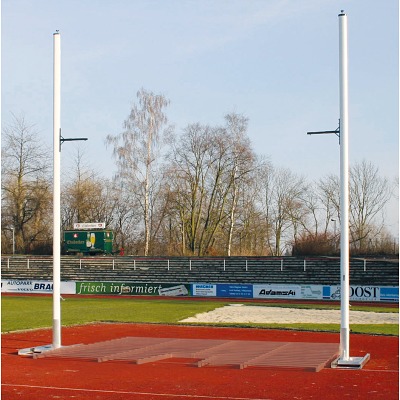 Sport-Thieme Stabhochsprungständer Wettkampf: Nach Bestimmungen des DLV und World Athletics – Der Stabhochsprungständer Wettkampf besteht aus einer Alu-Konstruktion mit Funktionsteilen aus Kunststoff oder Nirosta. Der Ständer ist mit dem Schlitten verschweißt, die Sprunghöheneinstellung mittels Kurbel von 1,50-6,50 m einstellbar. Die Laufschiene befestigen Sie mit Spezialdübeln und Schrauben sicher im Fundament. – Produktdetails: – Auslegerstabilisierung durch Dreieckkonstruktion – 4 leicht laufende Kunststoffrollen und Spezialdübel/Befestigung – Material: Aluminium, Nirosta und Kunststoff – Ovalprofilsäule (LxB): 98×142 mm – Stärke bis 10 mm – Sprunghöheneinstellung mittels Kurbel: 1,50-6,50 m