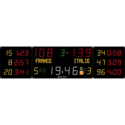 Die Stramatel Anzeigetafel 452 MB 3104 long ist ein Hingucker in jeder Sporthalle! – Die Stramatel Anzeigetafel 452 MB 3104 long können Sie nach den 2020 modifizierten FIBA-Richtlinien bedienen. Sie besteht aus 3 Modulen, die Sie komfortabel via Smartphone oder Tablet steuern. Wählen Sie auf dem Bedienpult zwischen 14 vorprogrammierten Sportarten aus: Badminton, Basketball, Boxen, Eishockey, Hallenfußball/Futsal, Hallenhandball, Hallenhockey, In-Line Hockey, Roller-Hockey, Tennis, Tischtennis, Unihockey, Volleyball. Im “Frei”- Modus können Sie Randsportarten einprogrammieren. – Das Modell bietet folgende Funktionen: – Anzeige des Spielstandes und der Mannschaftsnamen – Anzeige der Spielperiode, Auszeiten (BB, HB, VB) und Ballbesitz – Anzeige der bestraften Spielernummern – Anzahl der Mannschaftsfehler (BB) und Sätze – Anzeige der Spiel- und Pausenzeit – LED Laufschrift für Werbung und Sponsoring – 24 Sekunden Zeituhr für Angriffszeit – Anzeige Timer Strafzeit/ Auszeit – Anzeige Satzergebnis für Heim und Gast – Kompatibel mit FIBA-Richtlinien von 2020 – Weitere Informationen: – Bedienpult mit LCD-Display 2-zeilig, 20 Schriftzeichen von 9 mm – Timer-Pult: 14,5x15x4 cm für Zeitmessung, Auszeit und Signalhorn – PC Tastatur zur Eingabe der Mannschafts- und Spielernamen – Ladegerät für funkgesteuerte Pulte – DIN-Verbindungstechnik zwischen den Bedienpulten – USB-Anschluss – Mehrsprachiges Programm – Stramatel Multisport APP zur Bedienung der Hauptfunktionen auf einem Smartphone oder Tablet – Frontseite: Polycarbonat, mattschwarz, entspiegelt, ballwurfsicher