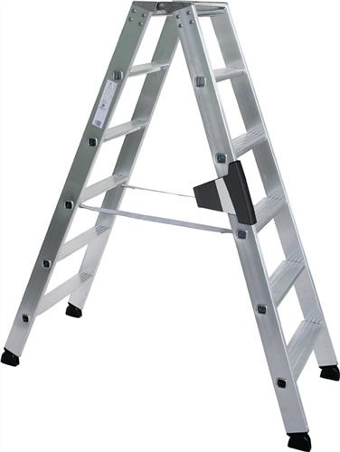 Stufenstehleiter 2×6 Stufen Alu.Gesamt-H.1400mm GÜNZBURGER · Aluminium · beidseitig begehbar · stabile Rechteckrohr-Holme · 80 mm tiefe, geriffelte Stufen · Stufenabstand 235 mm · 4-fach gebördelte Stufen-/Holmverbindung · konische Holmführung für