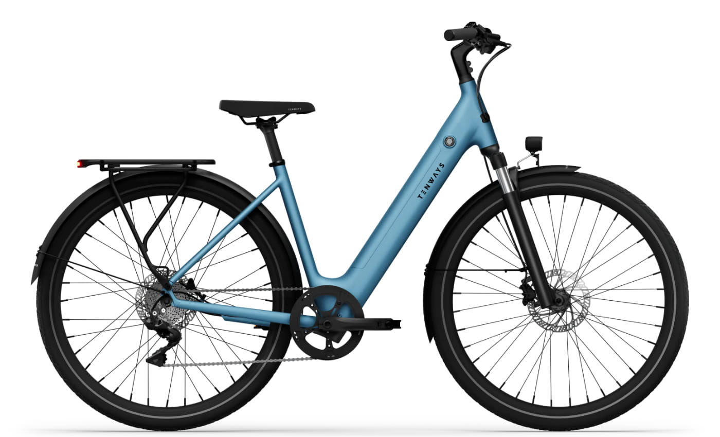 Tenways CGO800 Plus – Sky Blue Stilsicher durch die Stadt – leistungsstark & komfortabel Mit dem Tenways CGO800 Plus in Sky Blue bist du jederzeit stilvoll und effizient unterwegs. Der kraftvolle TENWAYS C9 Nabenmotor mit 250 W und 45 Nm sorgt für angenehme Unterstützung bis 25 km/h – perfekt abgestimmt durch den integrierten Drehmomentsensor. Der 475,2 Wh große Akku bringt dich bis zu 100 km weit – ideal für Pendler und Stadtradler. Dank SHIMANO CLARIS 8-Gang-Schaltung, hydraulischen Scheibenbremsen, gefederter SR SUNTOUR Gabel und pannensicheren 700×48C CST-Reifen ist dieses E-Bike auch für längere Strecken und wechselnde Untergründe bestens gerüstet. Das Design in Midnight Black wirkt besonders edel und zeitlos. In Kombination mit der verdeckten Kabelführung, dem SELLE ROYAL Sattel und hochwertigen Komponenten entsteht ein rundum stimmiges City-E-Bike für alle, die Wert auf Technik, Komfort und Ästhetik legen. Highlights auf einen Blick: 250 W TENWAYS C9 Motor, 45 Nm Drehmoment SHIMANO CLARIS 8-fach Schaltung Reichweite bis 100 km, 475,2 Wh Akku SR SUNTOUR Federgabel für hohen Komfort Hydraulische Scheibenbremsen Pannensichere CST-Reifen Elegantes Design mit verdeckter Kabelführung StVZO-konforme Beleuchtung & Rücklicht