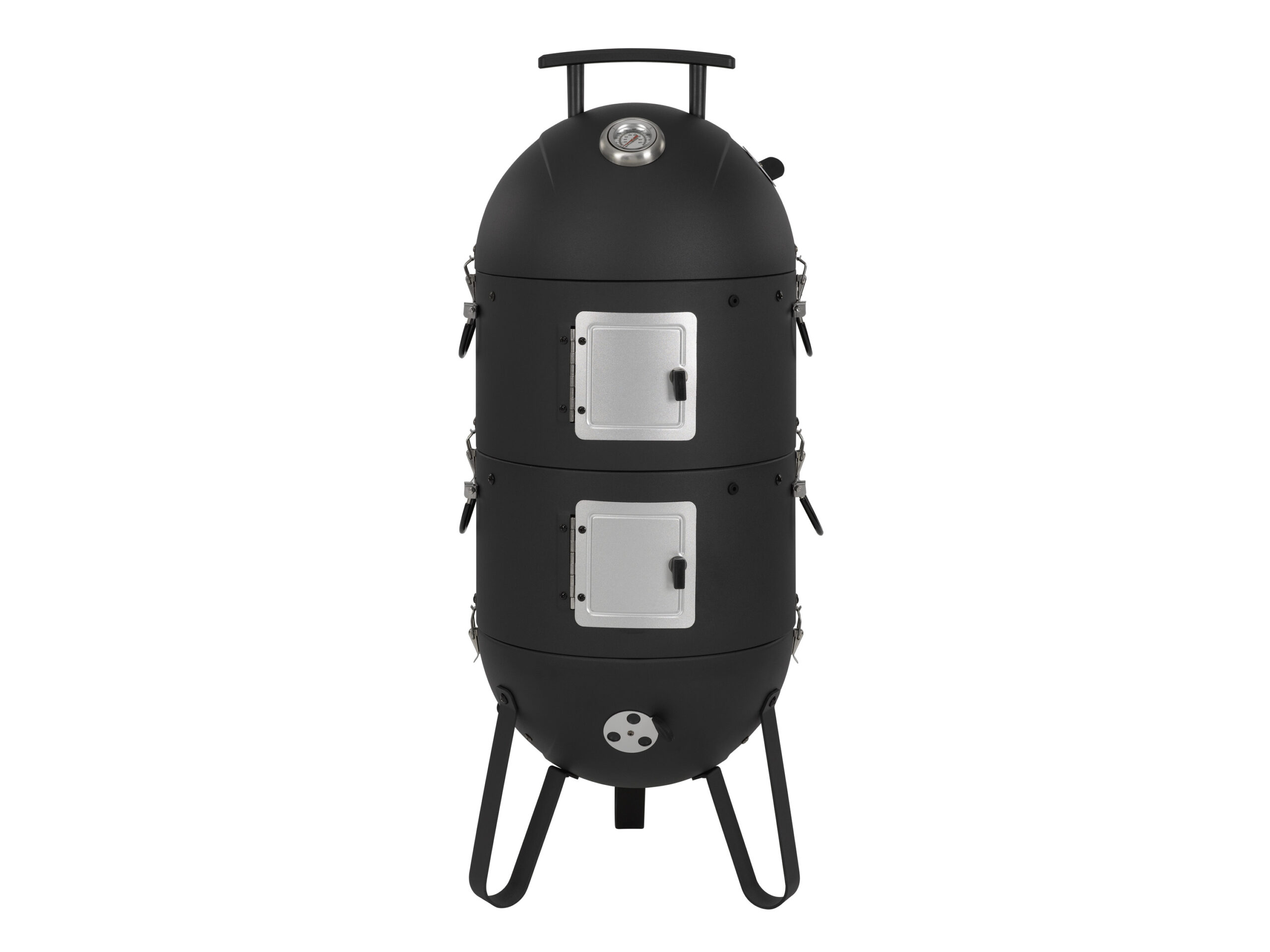 Holzkohle Smoker mit 5 Edelstahl-Räucherhaken Hitzebeständiger Deckelgriff und Thermometer Pulverbeschichteter Deckel mit 1 Lüftungsschieber 2 pulverbeschichtete Höhenerweiterungen mit je 2 Edelstahl Befestigungslaschen, jeweils mit 1 aluminisierter Tür Kohlerost Emaillierte Wasserschale Pulverbeschichtete Feuerwanne mit 1 Lüftungsschieber 3 pulverbeschichtete Standbeine Produktmerkmale Grillart: Holzkohle Grillfläche: je ca. Ø 33 cm max. Personenanzahl: 4-8 Personen Thermometer: ja Warmhalterost: nein Sichtfenster: nein Räder: nein Enthaltenes Zubehör: 5 Räucherhaken Material: Pulverbeschichteter Stahl Grillrost: verchromt Maße: ca. L 35 x B 35 x H 98 cm Gewicht: ca. 11,3 kg table{width:100%;}td{padding-right: 30px; padding: 0.5rem; border-bottom: 0.0625rem solid #e3e4e5;} tr:nth-child(odd) {background-color: #F2F3F4;}