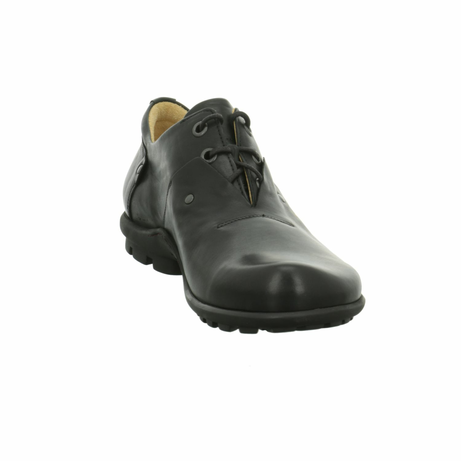 Schöne Herrenschnürschuhe von Think aus einem feinen hochwertigem Glattleder. Innen ist der Schuh mit einem cromfrei gegerbtem Leder ausgestattet. Der Schuh hat eine normale Weite. Der stabile Blockabsatz hat eine Höhe von cirka 2 cm. Die Laufsohle ist aus Gummi. Der Artikel verfügt über einen Schnürverschluss. Die Schuhgröße fällt regulär aus.