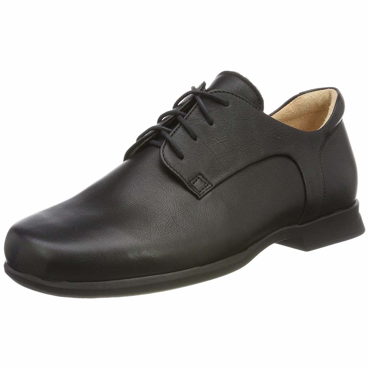 Schöne Herrenschnürschuhe von Think aus angenehm weichem und hochertigem Leder. Innen ist der Schuh mit einem cromfrei gegerbtem Leder ausgestattet. Der Schuh hat eine normale Weite. Der Blockabsatz hat eine Höhe von cirka 2 cm. Die Laufsohle ist aus Gummi. Der Artikel verfügt über einen Schnürverschluss. Die Schuhgröße fällt regulär aus.