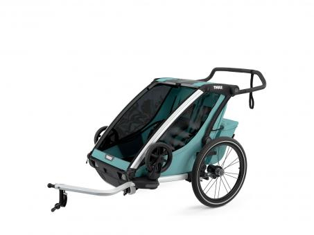 Fahrrad- und Buggy-Set, verstellbarer Bedienhebel, Neben dem klassischen Set um ihn als Buggy oder Fahrrad-Kinderanhänger zu verwenden, ist hier zusätzlich das Thule Komfortpaket inbegriffen., separater Gepäckraum, verstellbarer Schiebebügel – der ergonomische, verstellbare Schiebebügel bietet Eltern maximalen Komfort, Lüftungsschlitze und Beleuchtung – hoher Komfort und gute Sichtbarkeit, Thule Click n’ Store – bequemes Mitführen des Spazier-, Jogging- und Radfahr-Sets an Bord, wenn Sie zwischen verschiedenen Aktivitäten wechseln möchten, Kompatible Türbreite: 65 cm, Federung, einstellbare Federung, Sicherheitsgurt 5-Punkt, XL-Laderaum – lässt sich für mehr Beinfreiheit beim Joggen verstauen, Schlechte Radwege, Kopfsteinpflaster, Feldwege, dank der Federung reist es sich mit dem Thule Chariot Cross angenehmer., Somit ist der Thule Chariot Cross ein idealer Kinderanhänger, wenn der zu befahrende Untergrund etwas holperiger sein wird.,