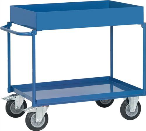 Tischwagen Bügel waagerecht 2 Stahlblechwannen L850xB500mm H.1 x 150 mm/1 x 40mm brillantblau · mit öldichter Wanne obere Stahlblechwanne 150 mm hoch, untere Stahlblechwanne mit 40 mm Rand · öldicht verschweißte Stahlkonstruktion · pulverbeschichtet, b