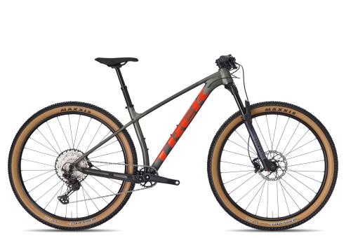 Das Gewicht liegt bei der Größe M (optionaler mit Tubeless-Bereifung) bei etwa 12,8 kg., Die 29 Zoll Laufräder bestehen aus Bontrager Kovee Comp-Felgen (Tubeless Ready), die mit 2,4 Zoll breiten Maxiss Recon Race Reifen bestückt sind., Mit dem Trek Procaliber 8 kannst du sowohl auf Hobby-Rennstrecken und auf anspruchsvollen Touren gleichermaßen bestehen., Ein agiles und flottes XC-Hardtail für deine Trail-Abenteuer: Das Trek Procaliber 8., Eingebremst wird mit gut zupackenden Shimano Scheibenbremsen., Der Rahmen besteht aus Alpha Platinum Aluminium und verfügt über viele Feinheiten wie ein konisches Steuerrohr, eine interne Zugverlegung und eine UDH-Aufnahme., Du kannst den Federweg also bei Bedarf einfach sperren, etwa auf Anstiegen oder auf festen Abschnitten., Vorne kommt beim Procaliber 8 eine 120 mm RockShox Recon Gold RL-Gabel mit DebonAir-Technologie, Motion Control-Dämpfung und Lockout zum Einsatz., Beim Antrieb greift das Trek